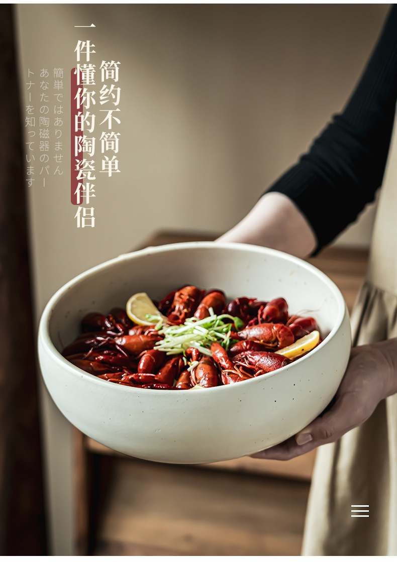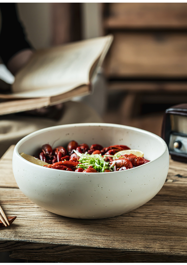 Cerámica de sésamo esmaltada japonesa gran tazón de langosta gran tazón doméstico tazón práctico tazón de cubierta tazón de sopa tazón de fideos tazón de fruta