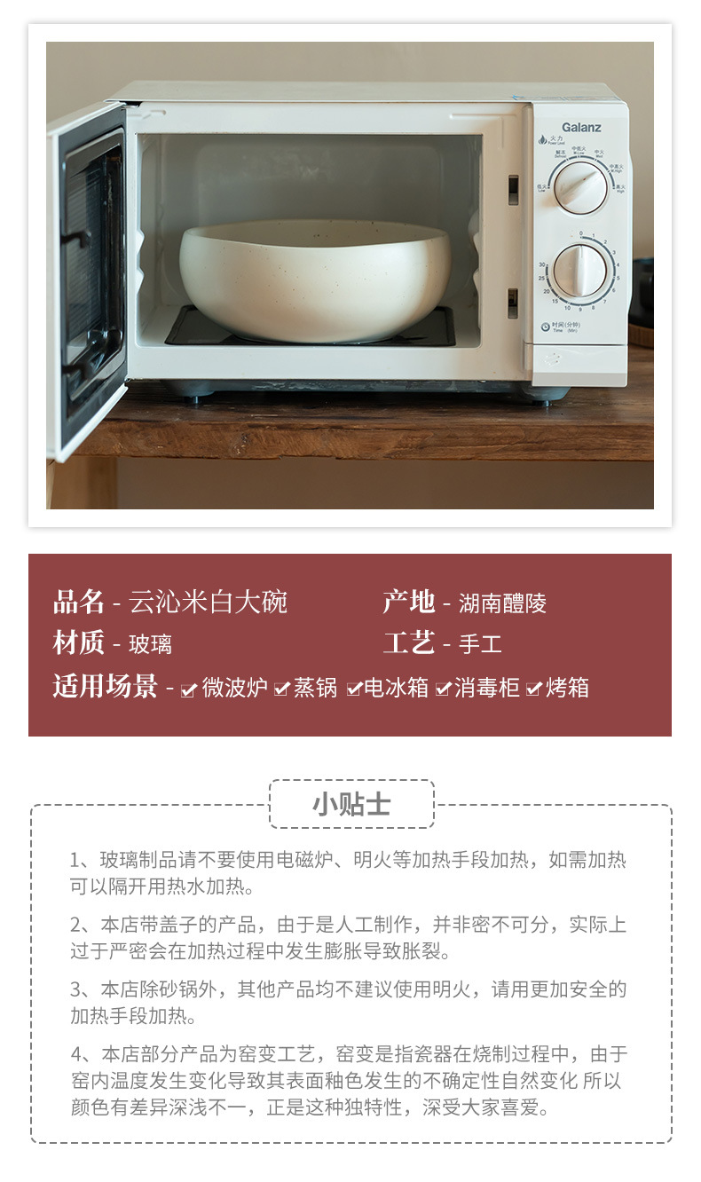 Yunqin - tazón grande de arroz blanco de 9,7 pulgadas (defectos ligeros)