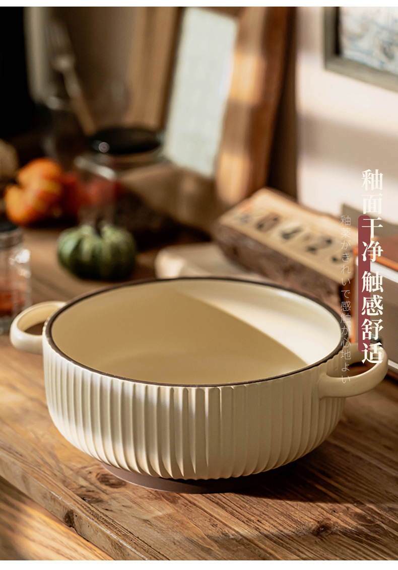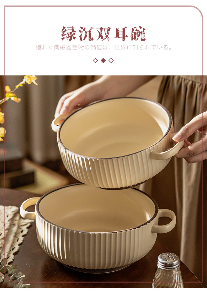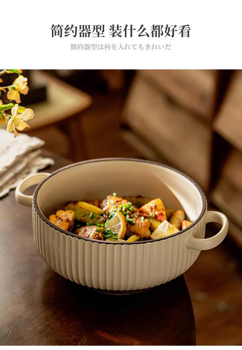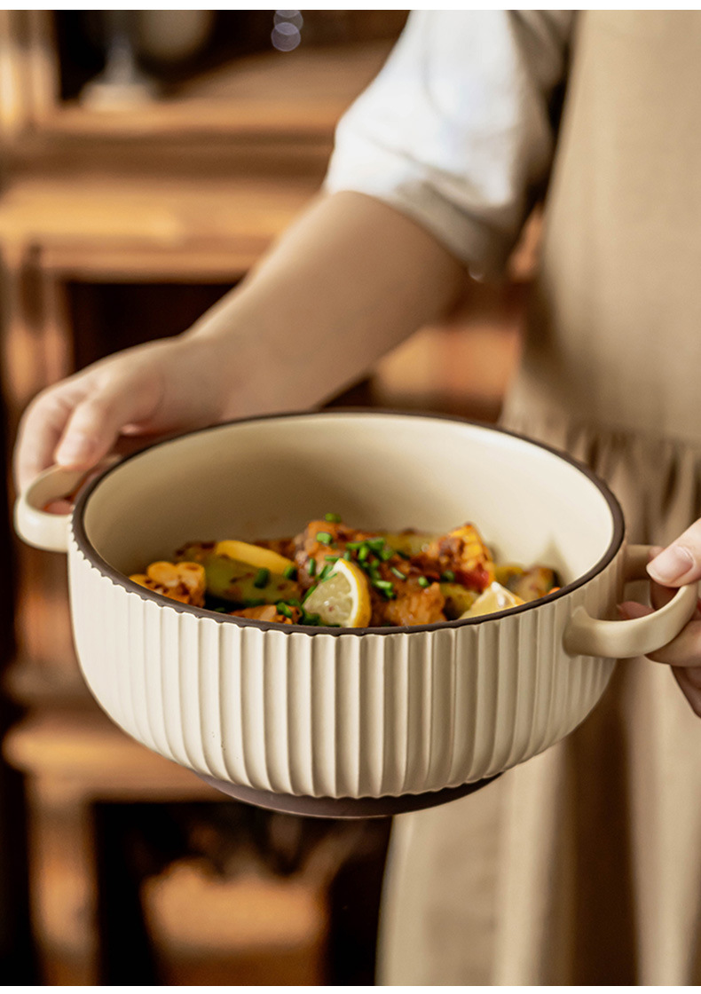 Simple anti-escaldadura tazón de doble oído vajilla de cerámica tazón de sopa tazón de polvo para el hogar tazón de arroz al horno tazón de fideos instantáneos al por mayor tazón profundo Jingdezhen