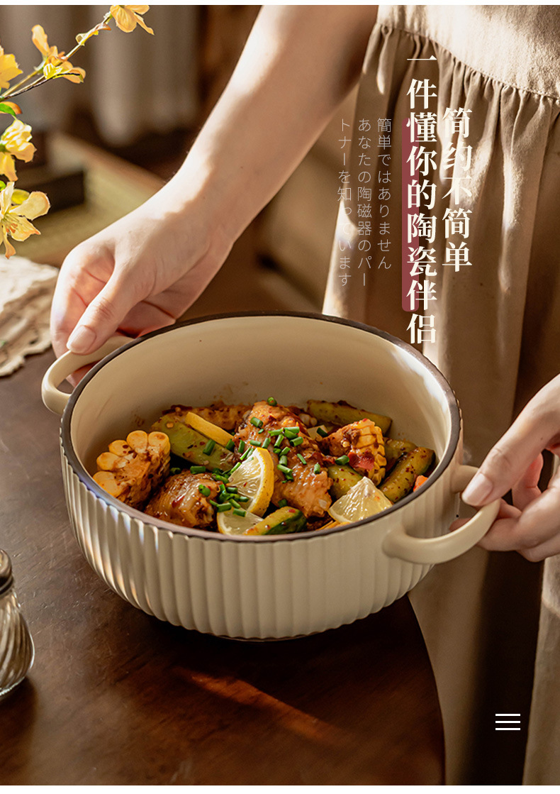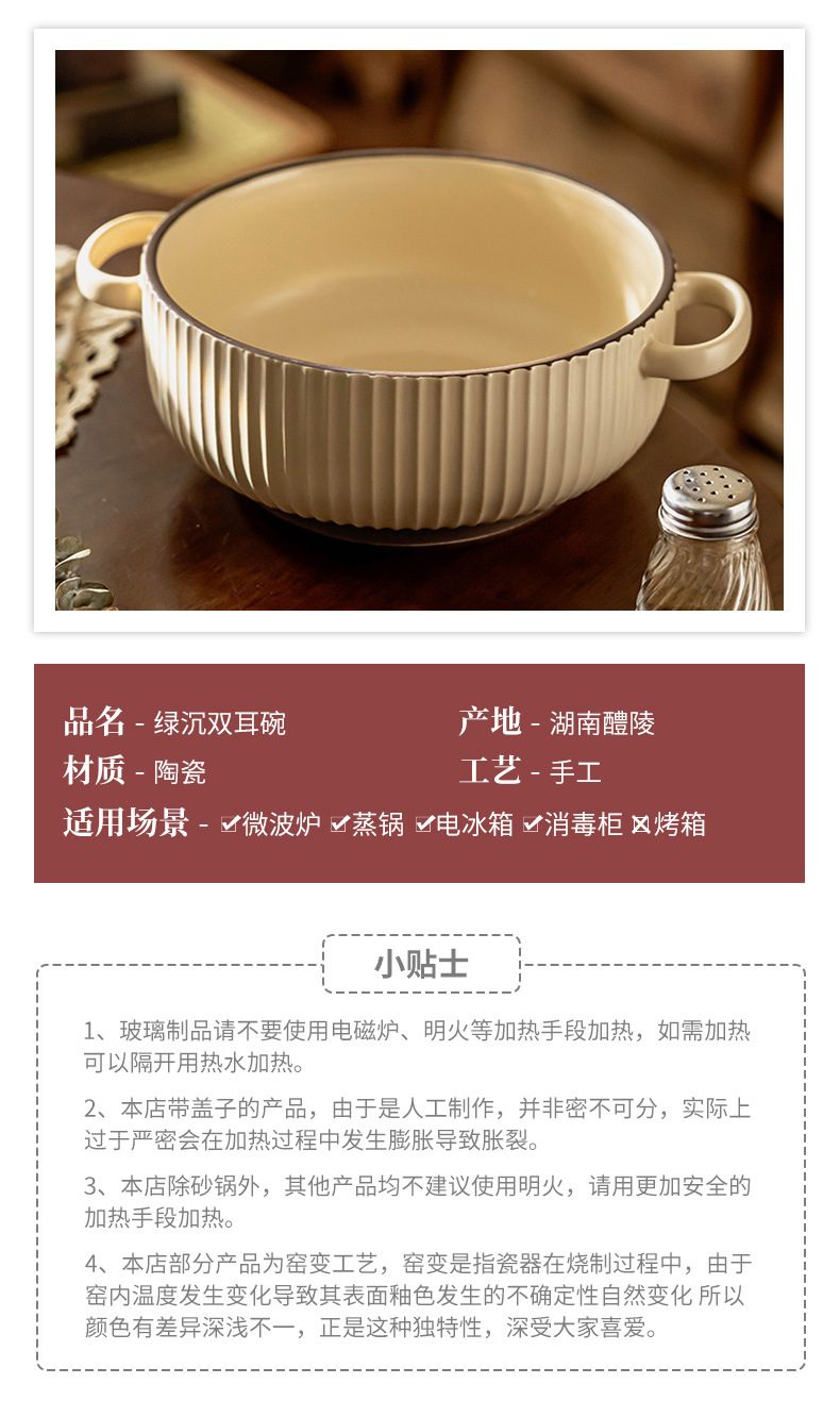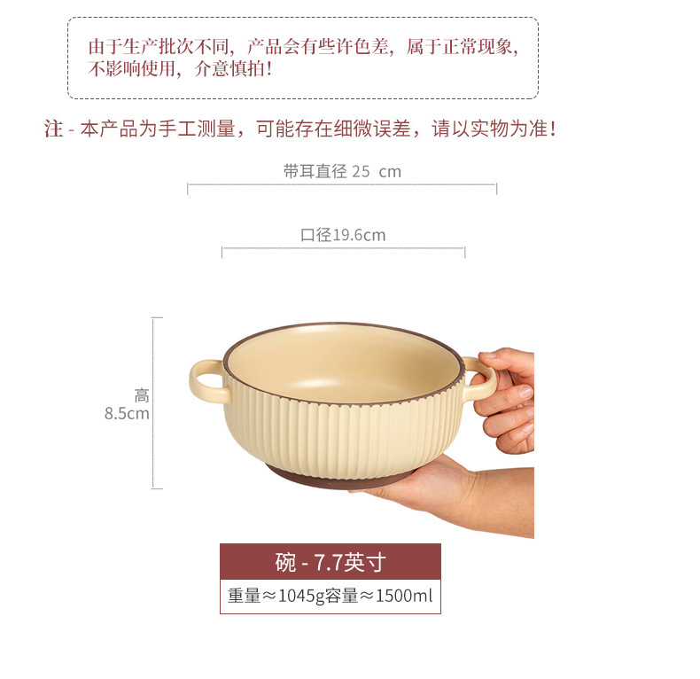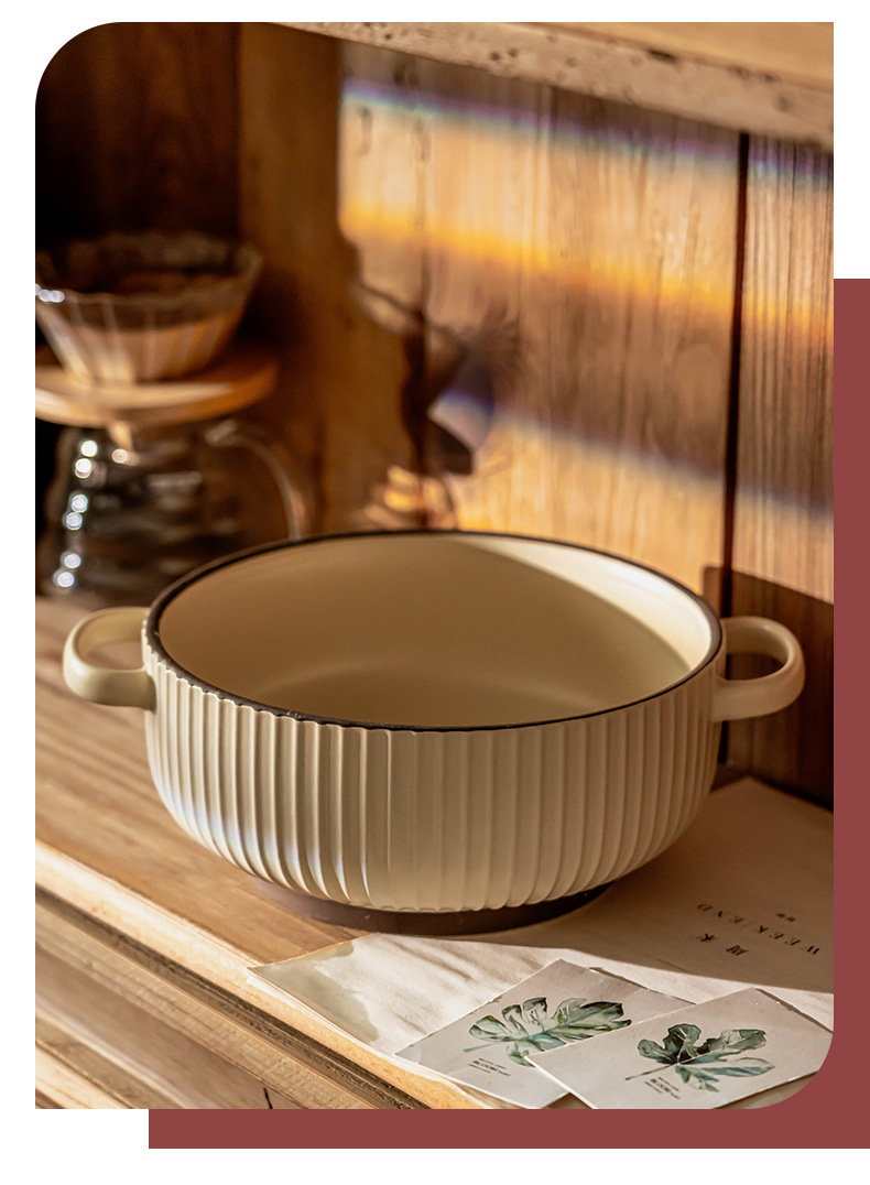 Simple anti-escaldadura tazón de doble oído vajilla de cerámica tazón de sopa tazón de polvo para el hogar tazón de arroz al horno tazón de fideos instantáneos al por mayor tazón profundo Jingdezhen