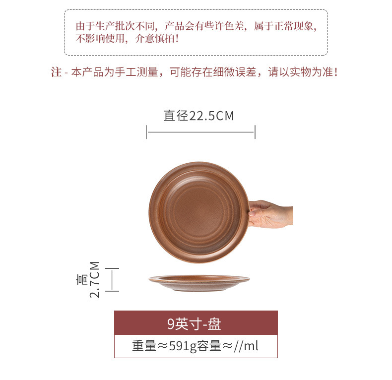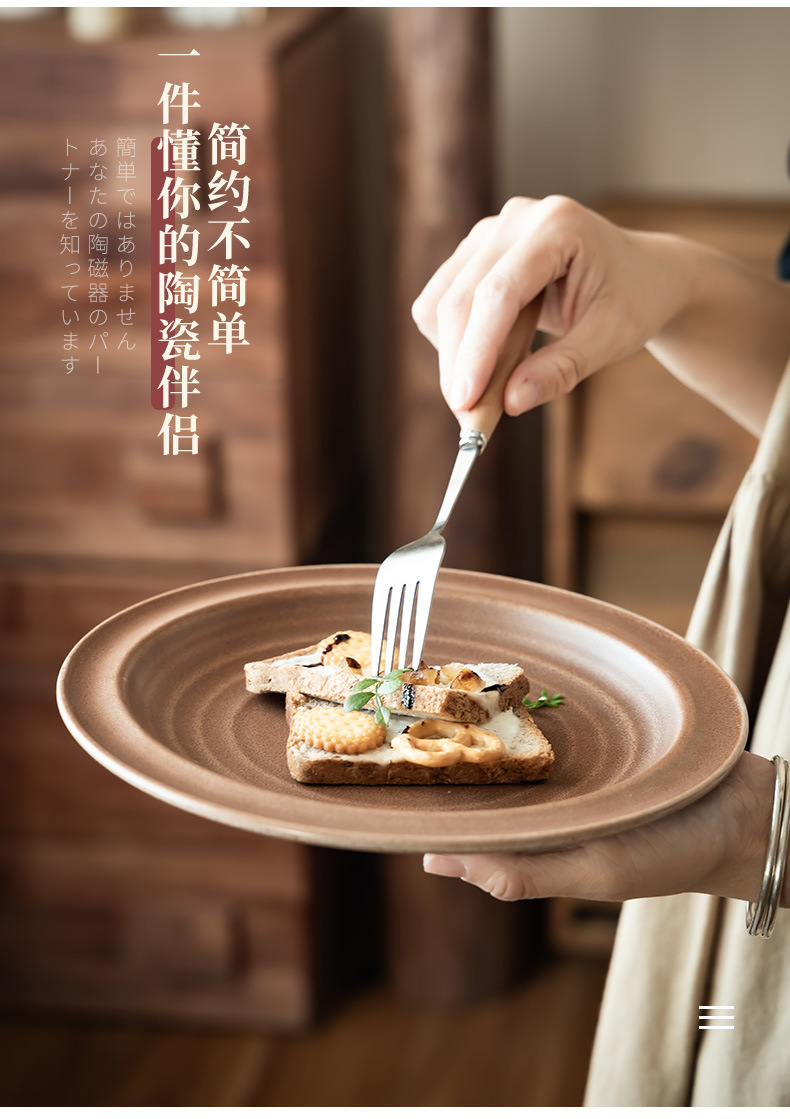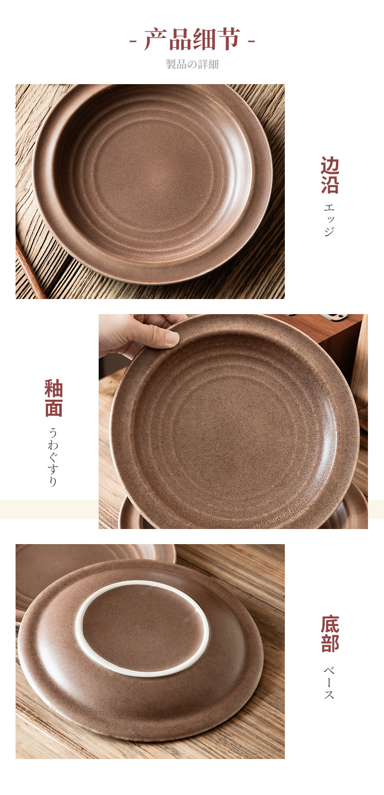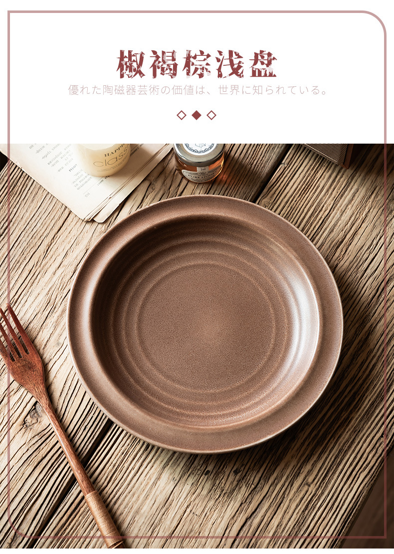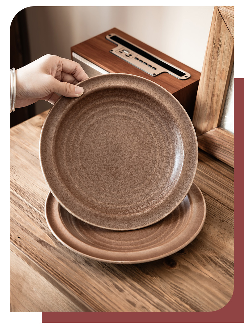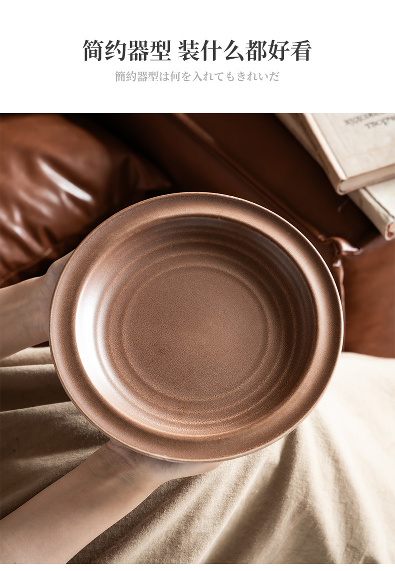 Plato marrón retro creativo simple plato de platos de té de la tarde refrigerio plato de fideos de alta calidad platos de cerámica casera