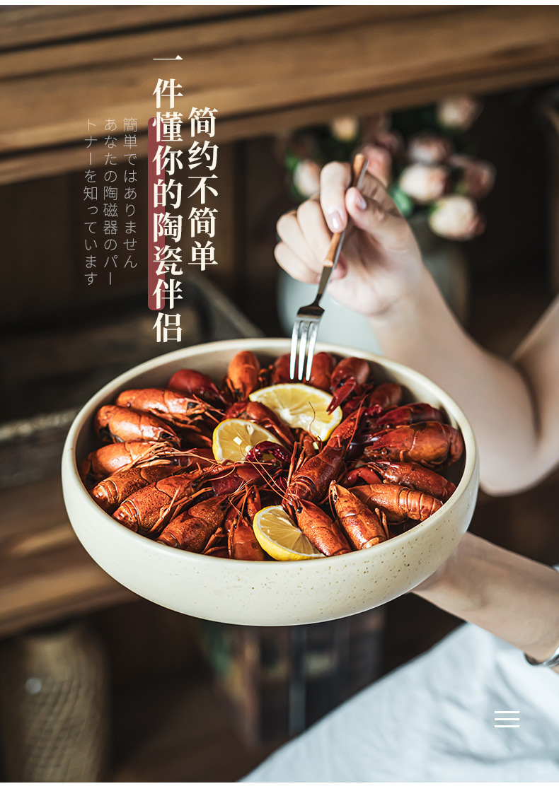 Cerámica de sésamo esmaltada de estilo retro tazón de cubiertos domésticos tazón de sopa de langosta tazón de pescado de chupa tazón de verduras