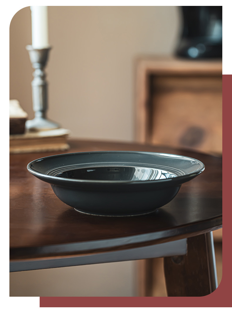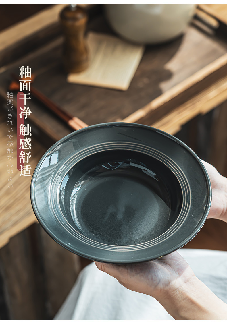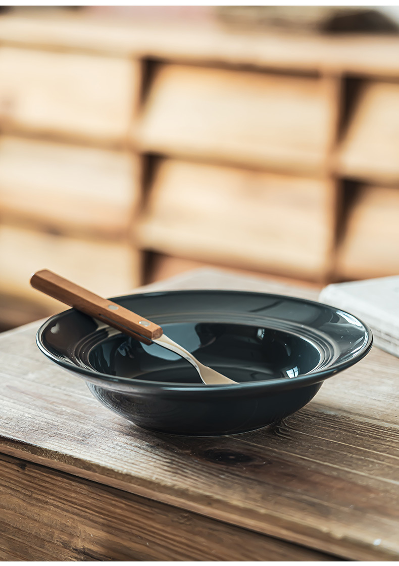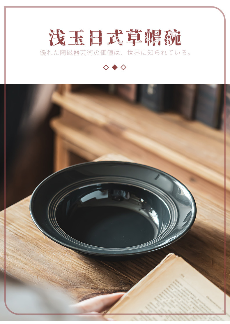 Tazón de cerámica estilo retro de color puro, tipo sombrero de paja, para uso doméstico, para verduras, postres, pasta, comida occidental y sopa, de diseño creativo