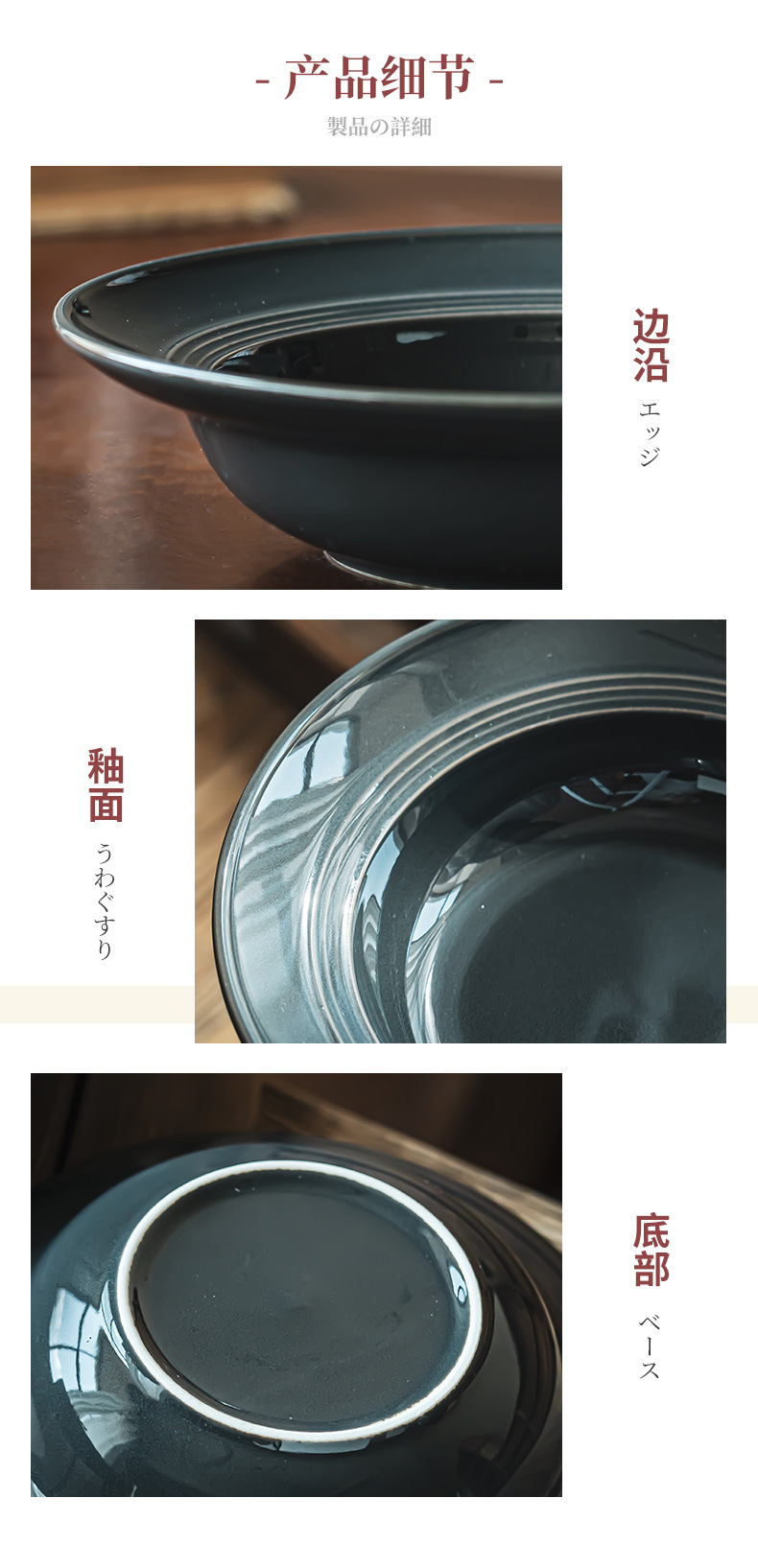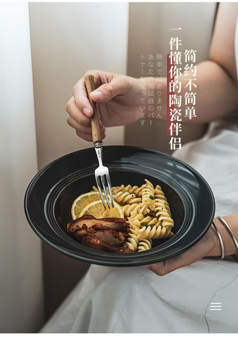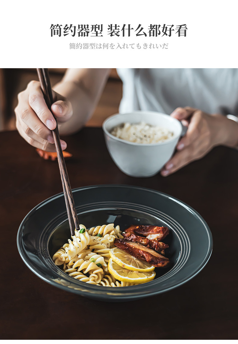 Tazón de cerámica estilo retro de color puro, tipo sombrero de paja, para uso doméstico, para verduras, postres, pasta, comida occidental y sopa, de diseño creativo