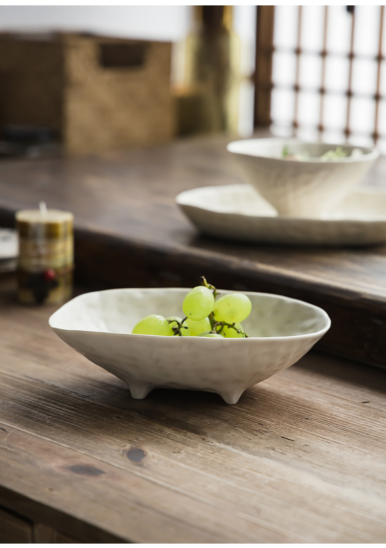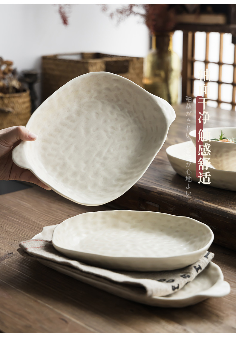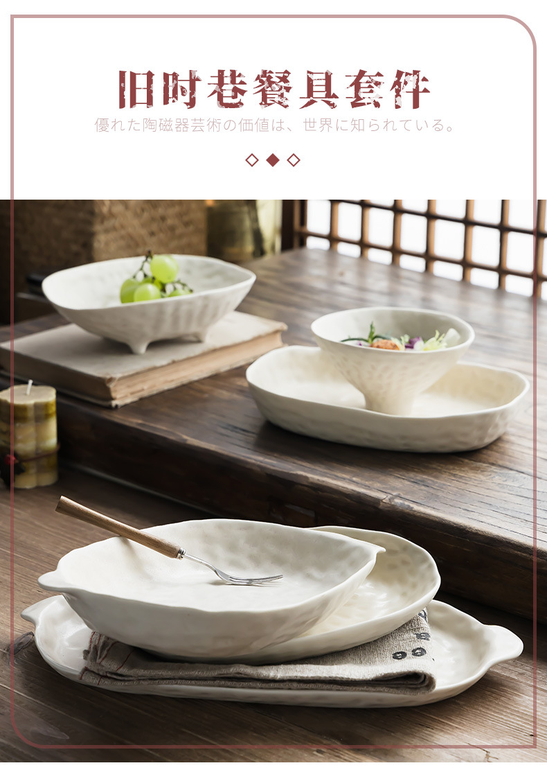 [Series de cubiertos de Old Time Lane] platos de cerámica retrógrados, platos de arroz caseros, platos irregulares, platos de pescado