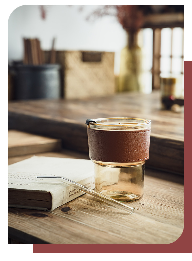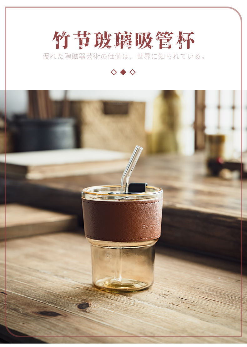 [High value] taza de bambú de vidrio taza de café de oficina taza de bebida taza de jugo de frutas taza de agua de paja