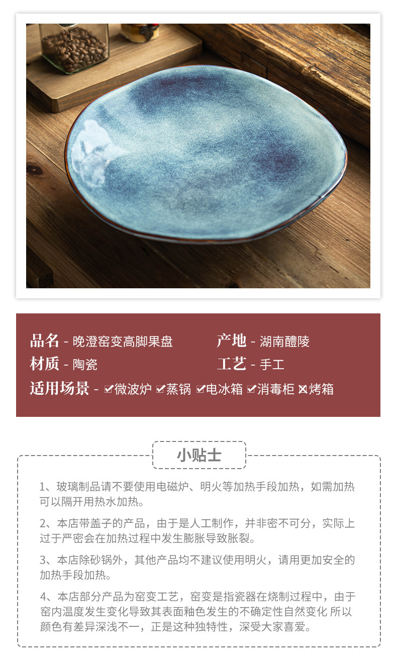 Tarsheng-High Foot Fruit Plate Blue 12 pulgadas