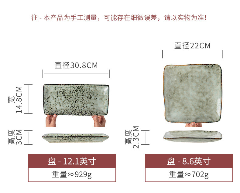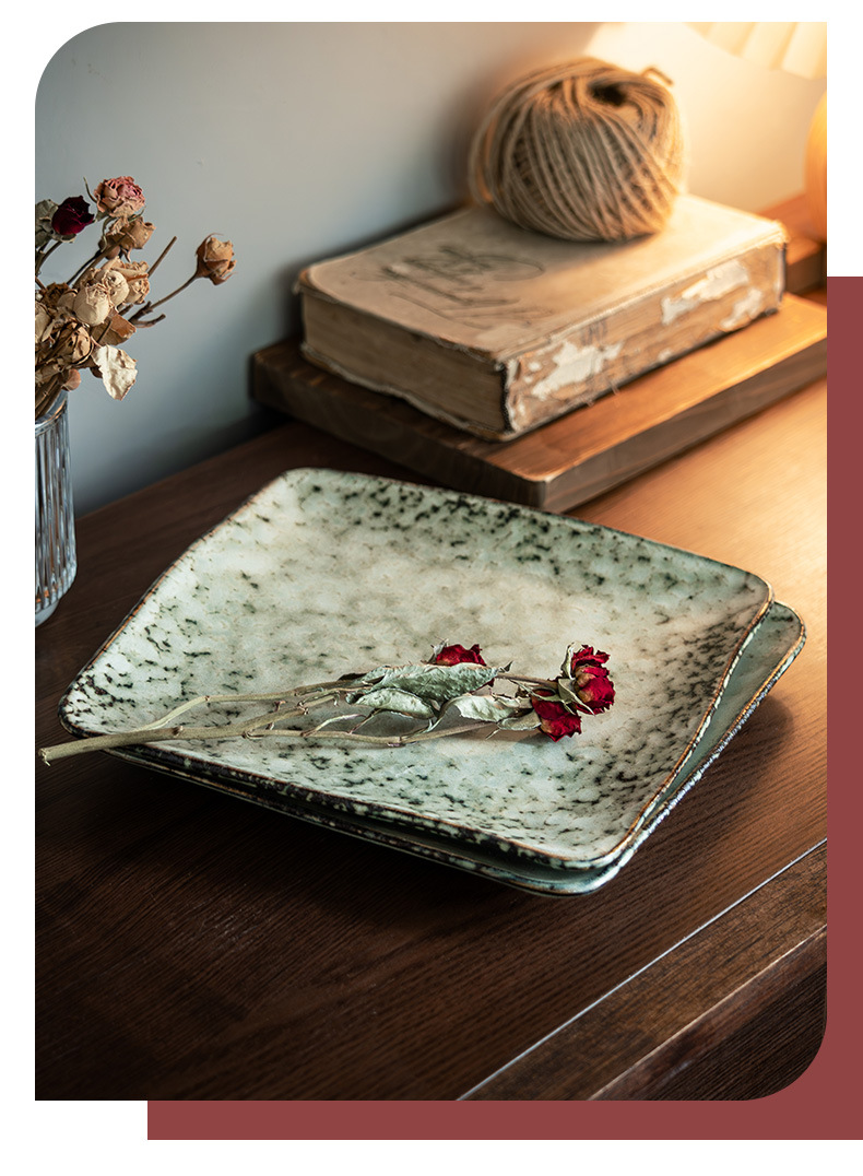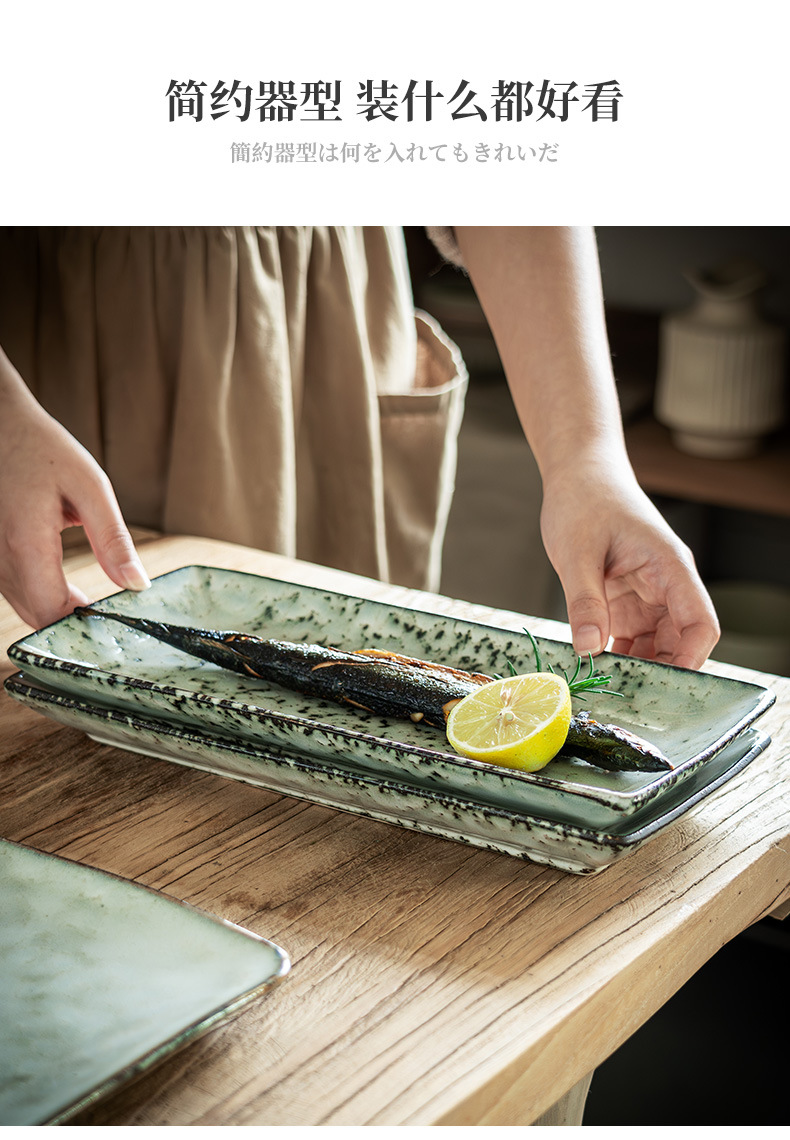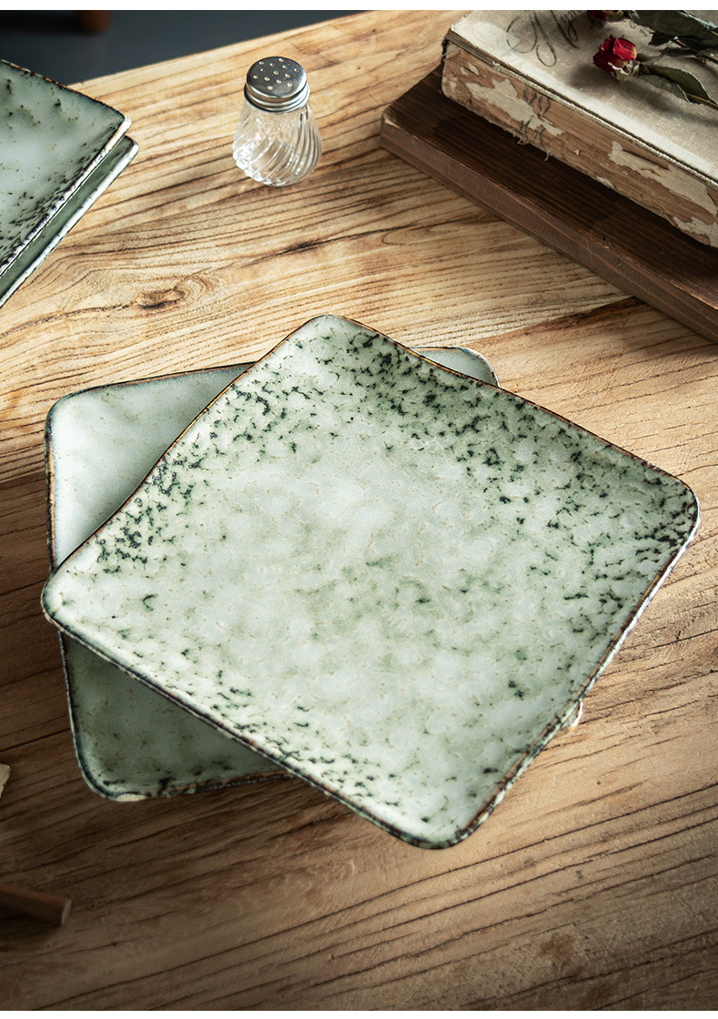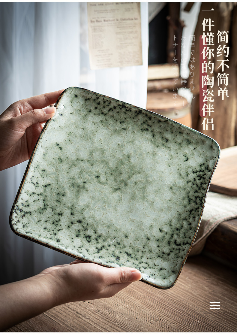 Placa cuadrada retro especial Placa de cerámica china placa occidental Placa de postre placa oscilante hogar plato de pescado al vapor plato de sushi