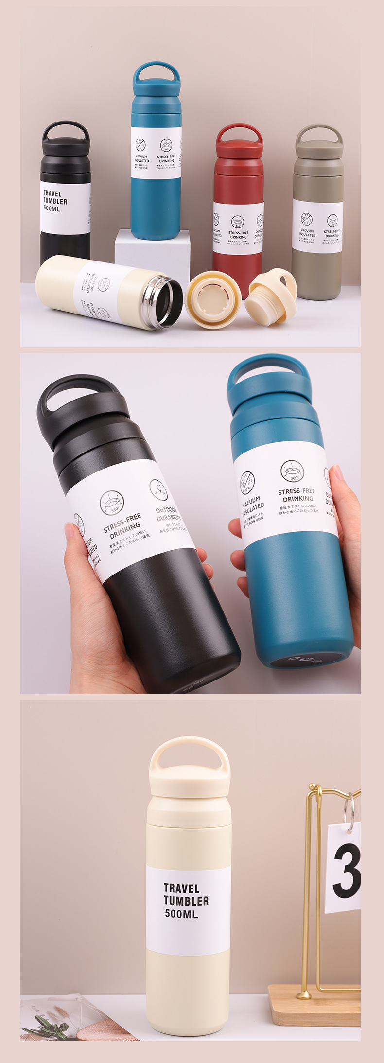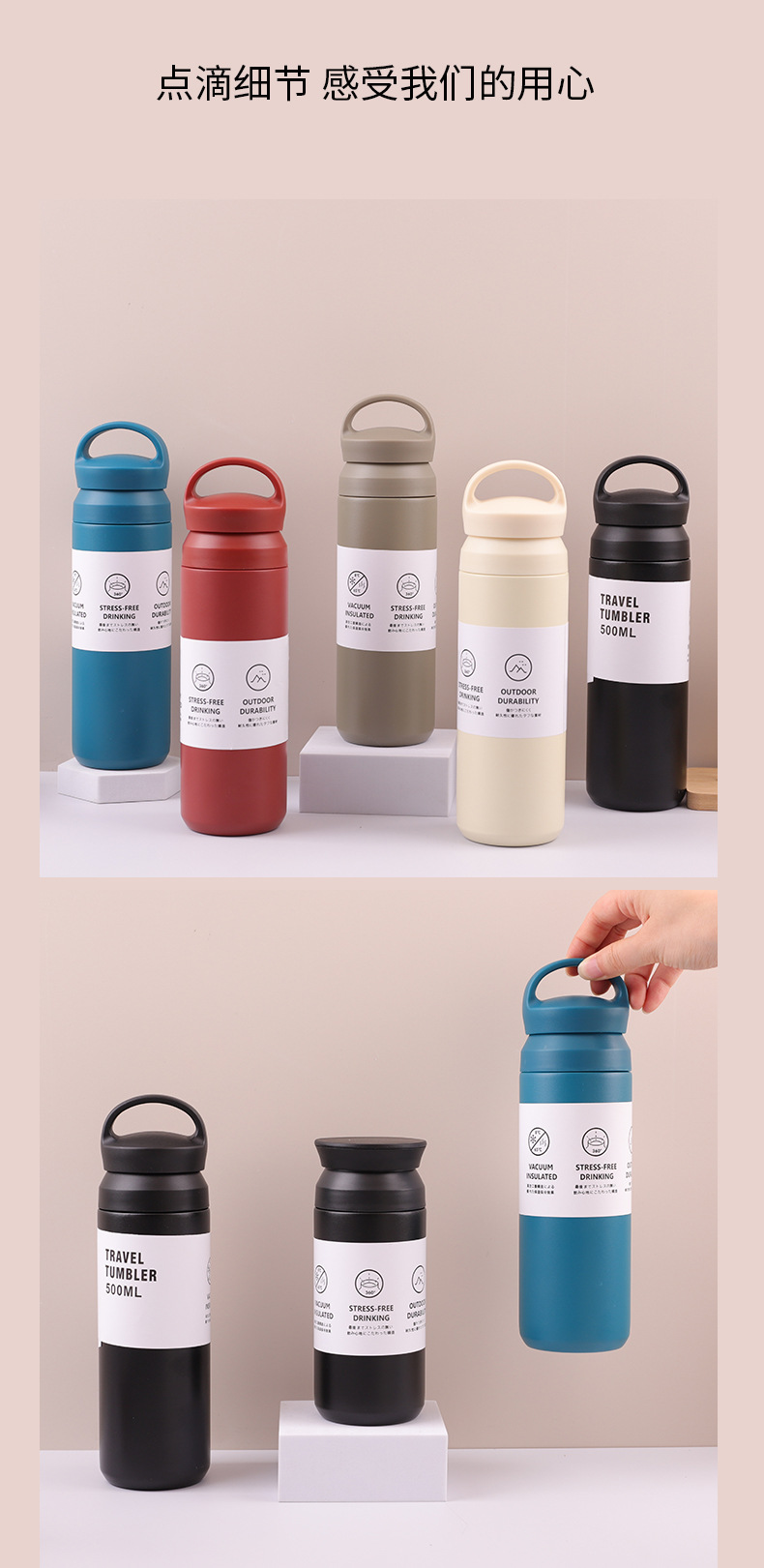 Taza creativa de acero inoxidable 304 con mango aislado portátil para café y agua Amazon