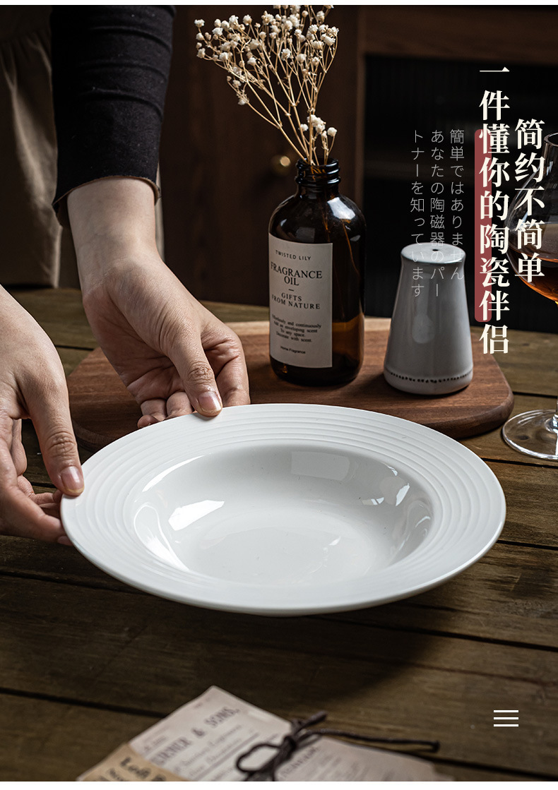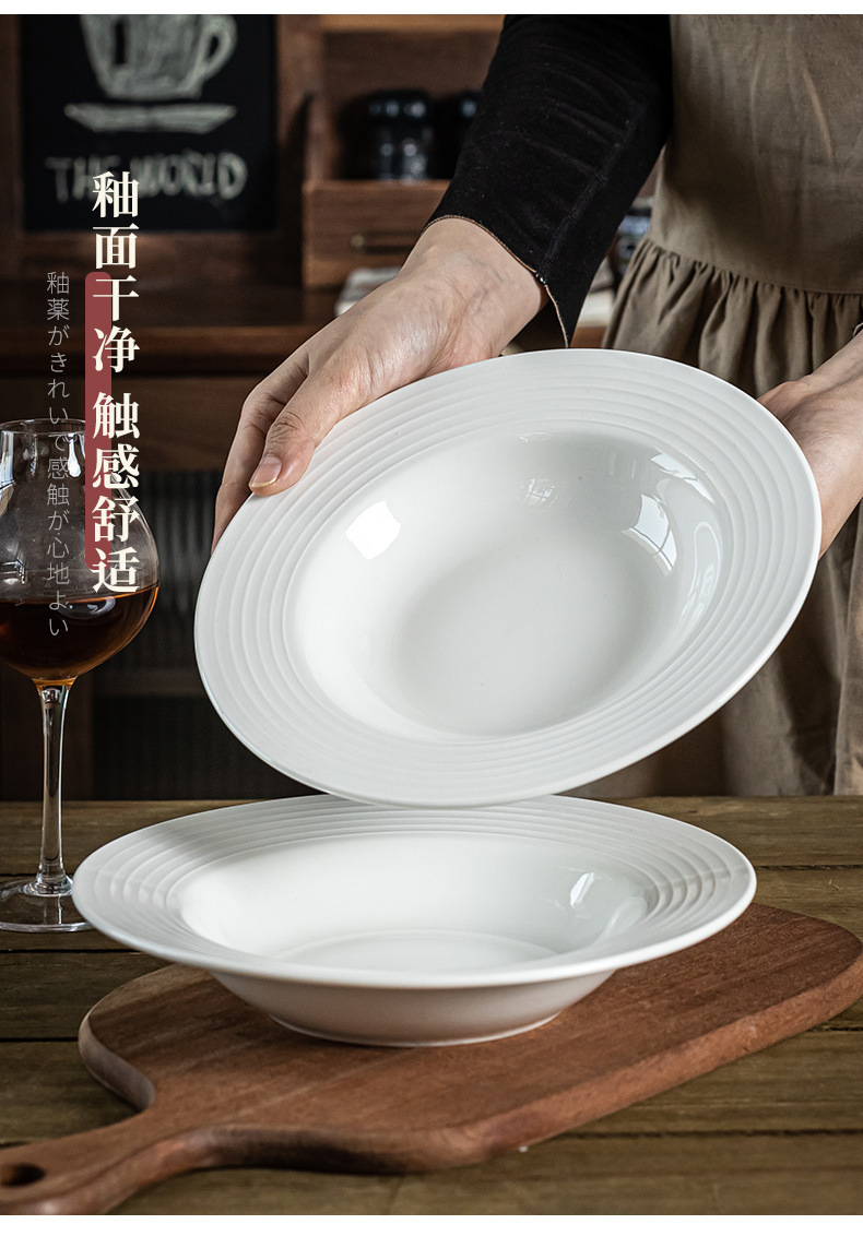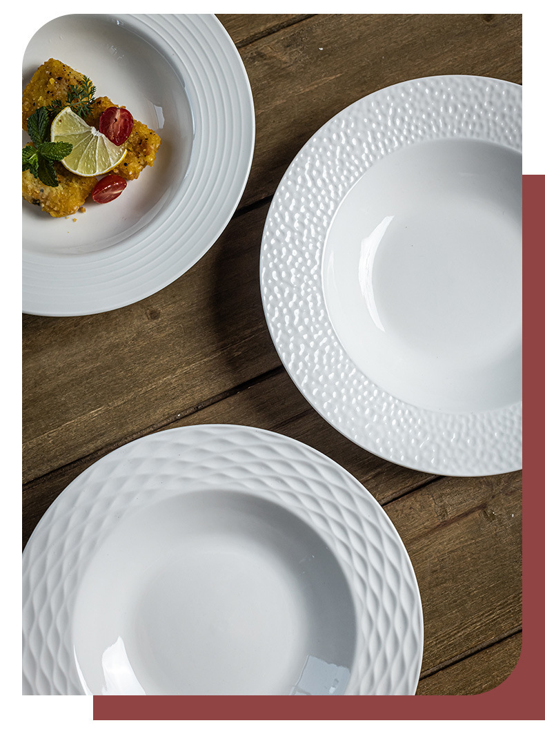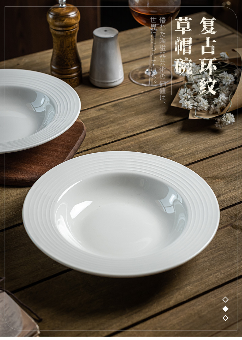 Sombrero de paja blanco puro plato de cerámica creativa comida occidental plato de sopa de cerámica plato de ensalada plato de hotel plato vajilla para el hogar