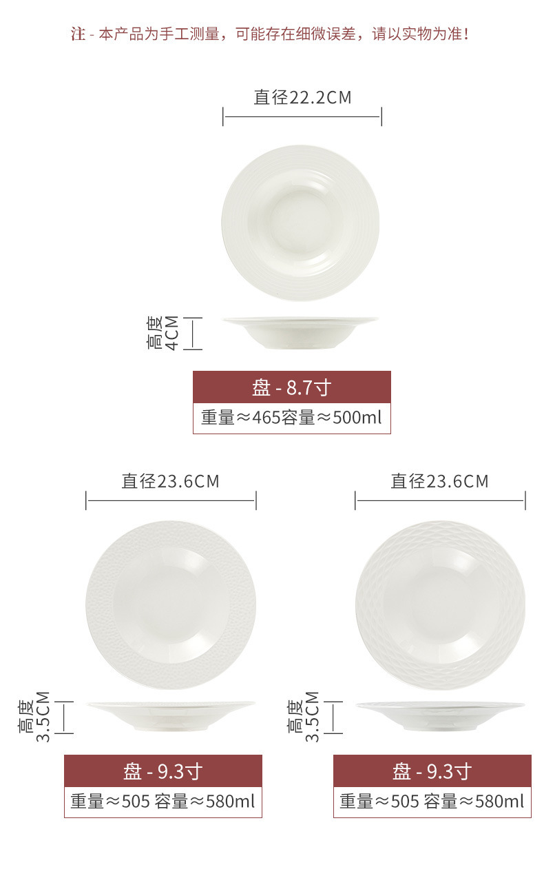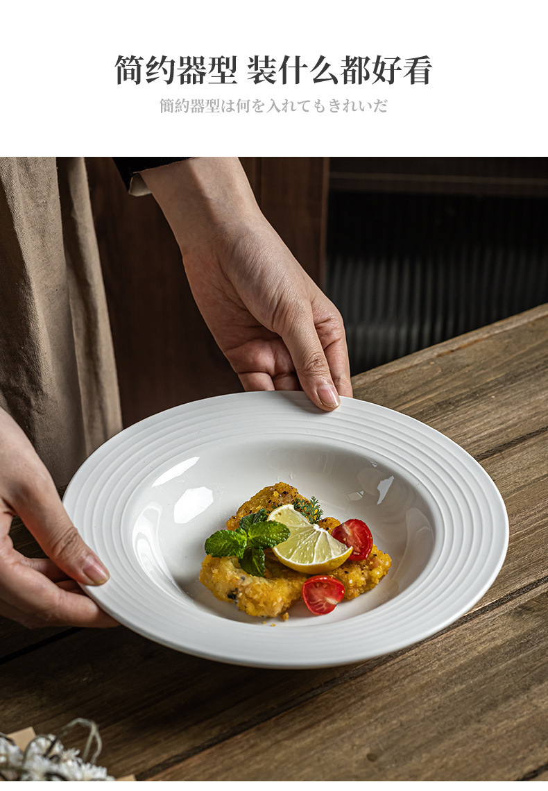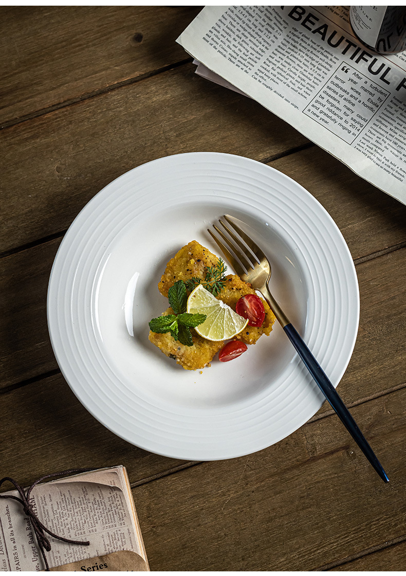 Sombrero de paja blanco puro plato de cerámica creativa comida occidental plato de sopa de cerámica plato de ensalada plato de hotel plato vajilla para el hogar