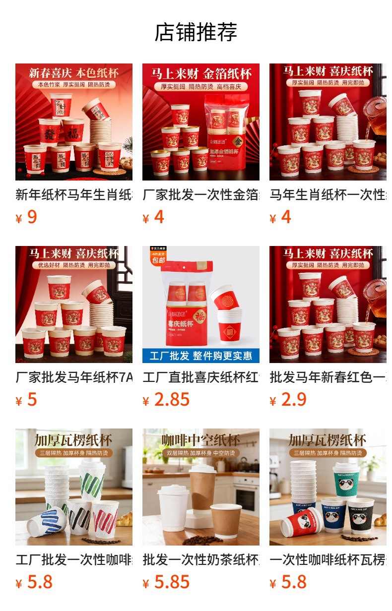 | Colores | 【Edición de Año Nuevo】 Vasos de Papel "Hazte Rico Rápido" - 100 Vasos/Paquete, 190ml,【Edición de Año Nuevo】Vasos de papel extra gruesos "Montando el Caballo hacia la Riqueza", 100 vasos/paquete, 248ml,[Estilo Año Nuevo] Vaso de Papel Natural Extra Grueso 2026 de 248 ml,【Edición de Año Nuevo】Vasos de papel Kraft natural extra gruesos de 248 ml,【Edición de Año Nuevo】Vasos de Papel Natural Extra Gruesos "Hazte Rico Rápido" 248ml,[Estilo grueso] Vasos de papel blanco 20 piezas/paquete 210 ml,[Modelo Económico] Vasos de Papel Buen Caqui, 50 unidades/paquete, 210ml,[Modelo económico] Buenos vasos de papel caqui 50 piezas/paquete 210ml,[Estilo grueso] Vasos de papel para beber gratis 50 piezas/paquete 210 ml,[Estilo grueso] Vaso de papel Value Pack 50 piezas/paquete 210 ml,[Engrosado] Taza blanca de color sólido 50 pc/paquete 210ml,[Estilo grueso] Vasos de papel a cuadros 50 piezas/paquete 220 ml,[Estilo grueso] Vasos de papel de moda 50 piezas/paquete 245 ml,[Estilo extra grueso] Vasos de papel de porcelana azul y blanca 50 piezas/paquete 245 ml,[Estilo económico] Taza de plástico 50 piezas/paquete 180ml,[Estilo económico] Taza de plástico 50 piezas/paquete 180ml,[Estilo engrosado] Taza de plástico 50 pc/paquete 200ml,[Estilo extra grueso] Vasos de plástico 50 piezas/paquete 220 ml,[Estilo grueso] Vasos de papel de moda 80 piezas/paquete 245 ml,[Modelo Económico] Disfruta de Vasos de Papel 100 unidades/paquete 190ml,[Modelo económico] Buenos vasos de papel caqui 100 unidades/paquete 210ml,[Modelo económico] Vasos de papel recubiertos sin cera 100 piezas/paquete 210 ml,[Estilo Engrosado] Vasos de Papel Engrosados 100 unidades/paquete 210ml,[Estilo grueso] Vasos de papel para beber gratis, 100 unidades/paquete, 210 ml,[Estilo grueso] Vasos de papel a cuadros 100 piezas/paquete 220 ml,[Estilo grueso] Vasos de papel de moda 100 piezas/paquete 245 ml,[Modelo engrosado] Vasos de papel de 9 oz, 100 piezas/paquete, 245 ml (púrpura y rosa distribuidos al azar),[Modelo engrosado] Vasos de papel "Hazte Rico" 100 unidades/paquete, 245ml, bolsa con cierre hermético.,[Estilo Extra Grueso] Vasos de Papel de Porcelana Azul y Blanca, 100 unidades/paquete, 245ml, Bolsa con Cierre Hermético.,[Estilo extra grueso] Vasos de papel Shunshui 100 piezas/paquete Bolsa con cremallera de 245 ml,[Estilo extra grueso] Vasos de papel natural 20 piezas/paquete 245 ml,[Estilo extra grueso] 80 vasos de papel naturales/paquete 210ml,[Estilo extra grueso] Vasos de papel natural 100 piezas/paquete 248 ml,[Estilo Extra Grueso] Vasos de Papel Natural 100 unidades/paquete 245ml Bolsa con Cierre Hermético,[Estilo Extra Grueso] Vasos de Papel Natural 100 unidades/paquete 245ml Bolsa con Cierre Hermético,[Estilo Extra Grueso] Vasos de Papel Color Natural Intenso 100 unidades/paquete Bolsa con Cierre Hermético de 245mm,[Modelo Económico] Vasos de Papel Festivos 50 unidades/paquete 210ml,50 vasos de papel/paquete de 210 ml (Año del Dragón: más que suficiente cada año),[Modelo económico] Vasos de papel Xile 100 piezas/paquete 190 ml,[Modelo económico] Vasos de papel Xifu 100 piezas/paquete 210 ml,[Estilo grueso] Vasos de papel Xifu 100 piezas/paquete 248 ml,[Estilo extra grueso] Vasos de papel My Family Youxi 100 piezas/paquete 248 ml,【Extra Gruesos】 Vasos de Papel Dragón Auspicioso, 100 Vasos/Paquete, 210ml, Fecha de Producción 2023,[Modelo delgado] Vasos de plástico 100 piezas/paquete 150ml,[Modelo económico] Vasos de plástico 100 piezas/paquete 180ml,[Estilo Reforzado] Vasos de Plástico 100 unidades/180ml,[Modelo engrosado] Vasos de plástico 80 piezas/paquete 220ml,[Estilo engrosado] Vasos de plástico 100 piezas/paquete 220 ml,[Estilo extra grueso] Vaso de plástico con la palabra "Fu" 100 piezas/paquete 220 ml,[Estilo extra grueso] Vasos de plástico 100 piezas/paquete - 220 ml,[Estilo extra grueso] Vasos de plástico 100 piezas/paquete 220 ml,[Tipo extra grueso] Vasos de plástico 100 piezas/paquete 220 ml,[Tres capas engrosadas] Vaso de papel corrugado roscado + tapa 10 juegos/pieza,[Tres capas engrosadas] Vaso de papel corrugado estilo Panda + tapa 10 juegos/pieza,[Aislamiento de doble capa] Vaso de papel hueco + tapa, 10 unidades por tira |
