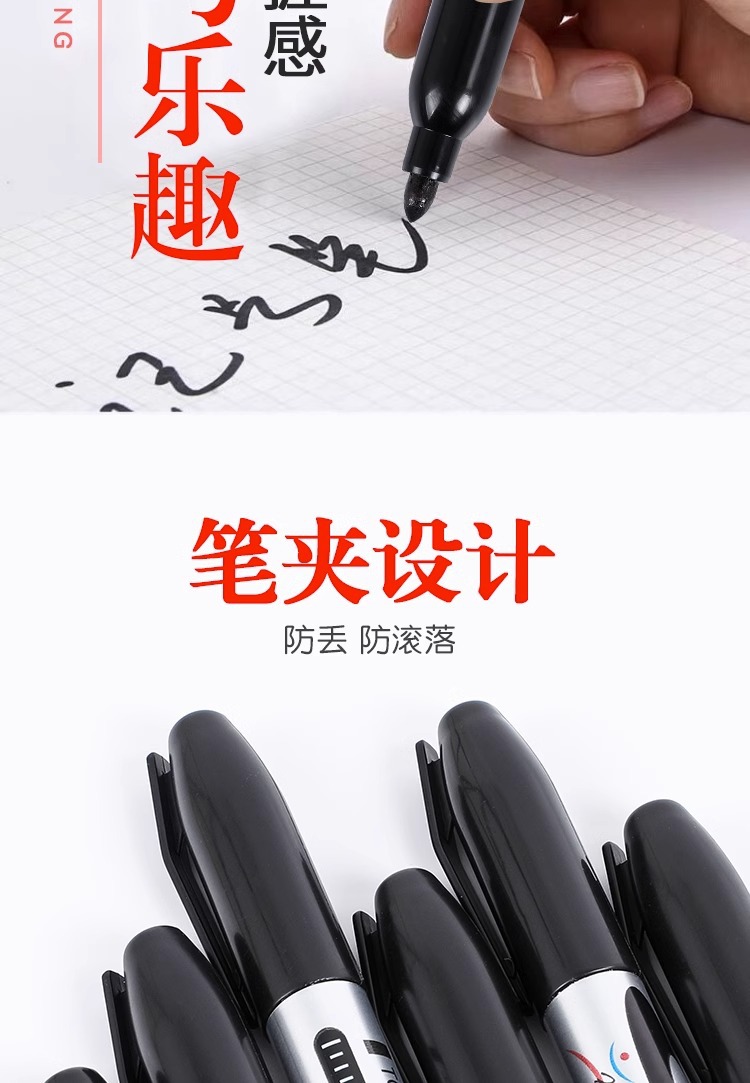 Haijia marcador de cabeza gruesa negro puede agregar tinta marcador de bocetos clave conjunto de lápiz a prueba de agua