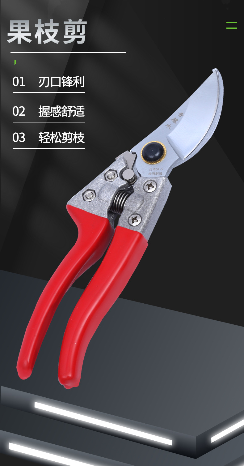 Tijeras de podar de árboles frutales de Vine verde fabricante en stock tijeras de árboles frutales SK5 mango de aleación de aluminio ramas que ahorran mano de obra tijeras de podar de frutas