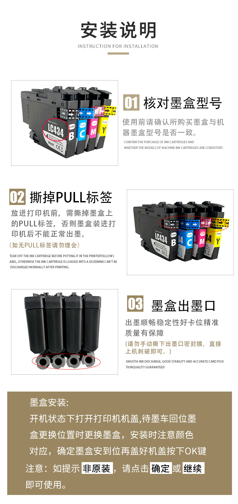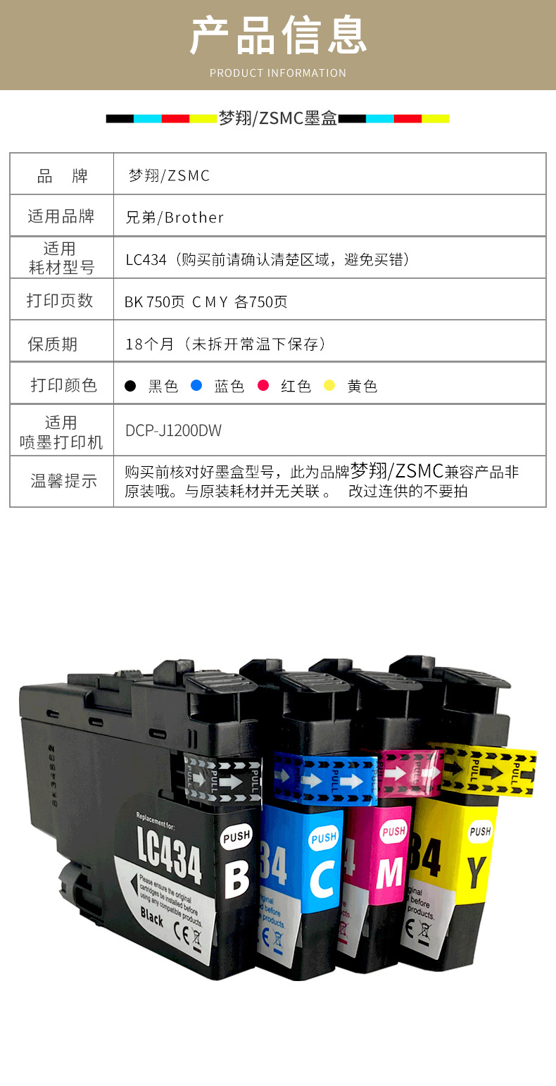 | Color | LC434BK Negro,LC434C Azul,LC434M Rojo,LC434Y amarillo,Traje de cuatro colores del cartucho de tinta LC434 |