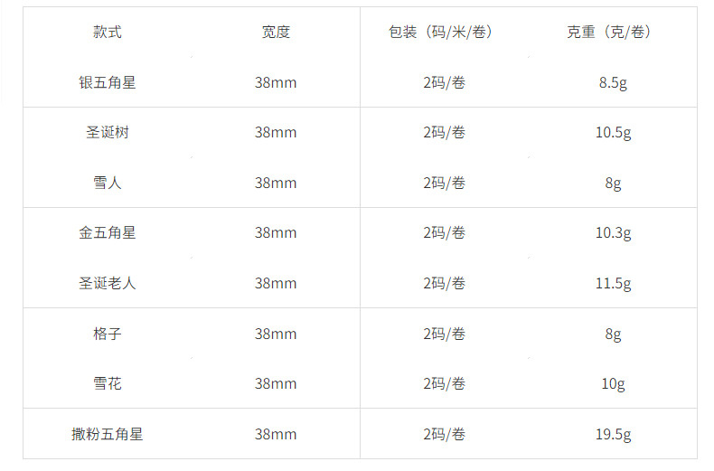 | Especificaciones y modelos | Estrella de cinco puntas de plata, árbol de navidad, muñeco de nieve, estrella de cinco puntas de oro, papá noel, celosía, copos de nieve, estrella de cinco puntas en polvo |