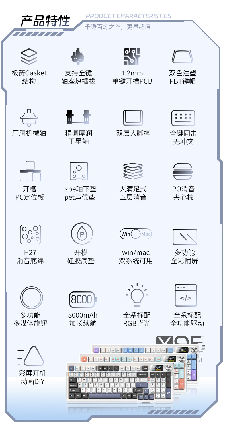 | Colores | Bluetooth de tres modos [alto con 8000 mAh]-Extreme Night Gold-Haixia Axis-Mahjong Sound,Bluetooth de tres modos [alto con 8000 mAh]-Yunwu Purple-Haixia Eje-Mahjong Sound,Bluetooth de tres modos [alto con 8000 mAh]-Lime Orange-Haixia Axis-Mahjong Sound,Bluetooth de tres modos [alto con 8000 mAh]-Snow Blue-Haixia Axis-Mahjong Sound,Bluetooth de tres modos [versión estándar 4000 mAh]-Yunwu Purple-Axis de Konoha-Shiziyin,Bluetooth de tres modos [versión estándar 4000 mAh]-Lime Orange-Axis de Konoha-Shizi Yin,Bluetooth de tres modos [versión estándar 4000 mAh]-Snow Blue-Axis de Konoha-Shiziyin,Plantilla única cableada-nube púrpura-Konoha Eje-Shizi Yin,Versión con cable de una sola plantilla-Lime Orange-Konoha Eje-Stone Sound,Cableado de una sola plantilla-Snow Blue-Konoha Eje-Shizi Yin |