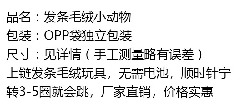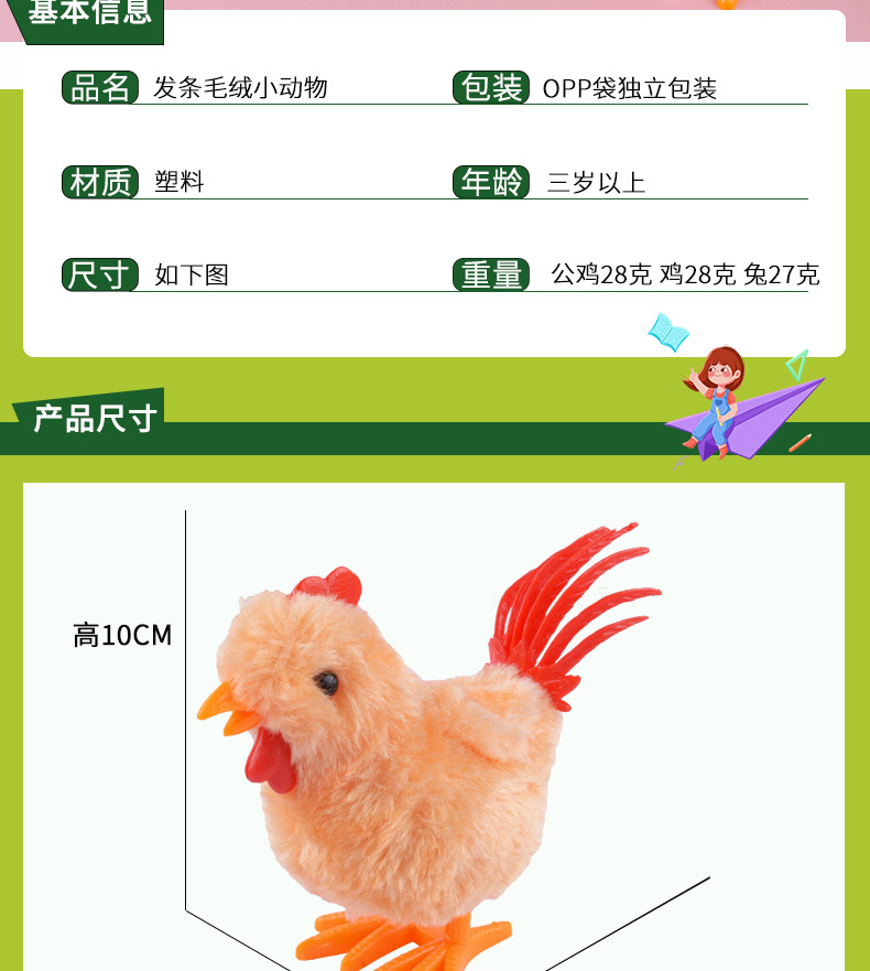 | Color | Animales de felpa mecánica-Polla,Animal de peluche Clockwork-Conejo,Clockwork animal de peluche-pollo grande |