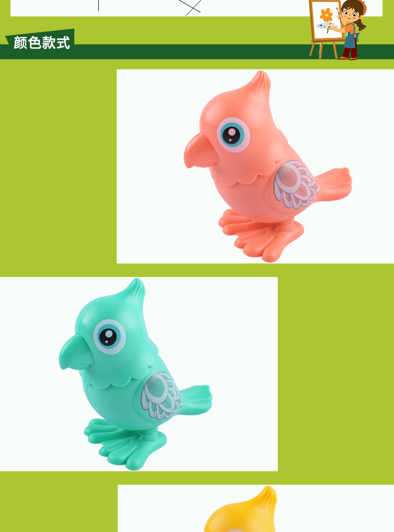 | Color | Loro de relojería-color aleatorio |