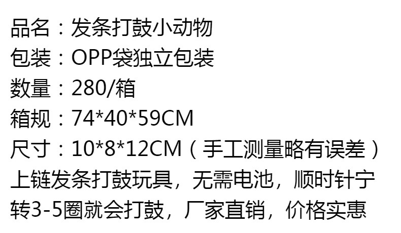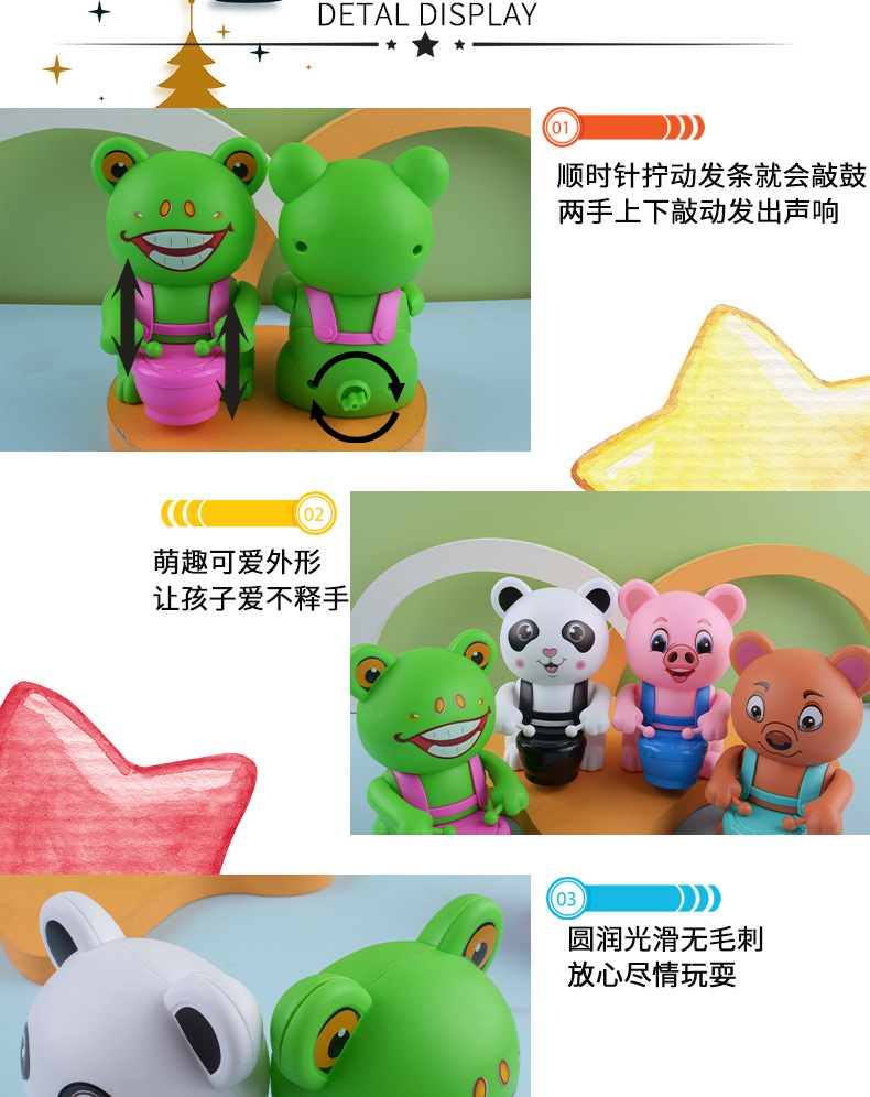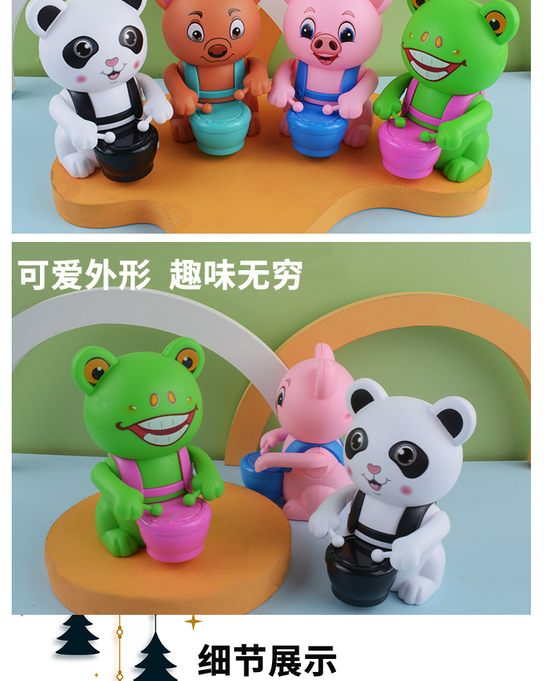 | Color | Pequeño tambor animal-oso,Tambor pequeño animal-cerdo,Pequeño animal de tambor-Panda,Drumming animal-Rana |