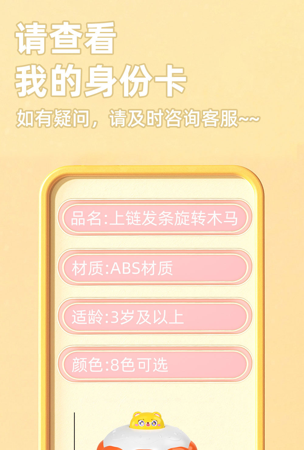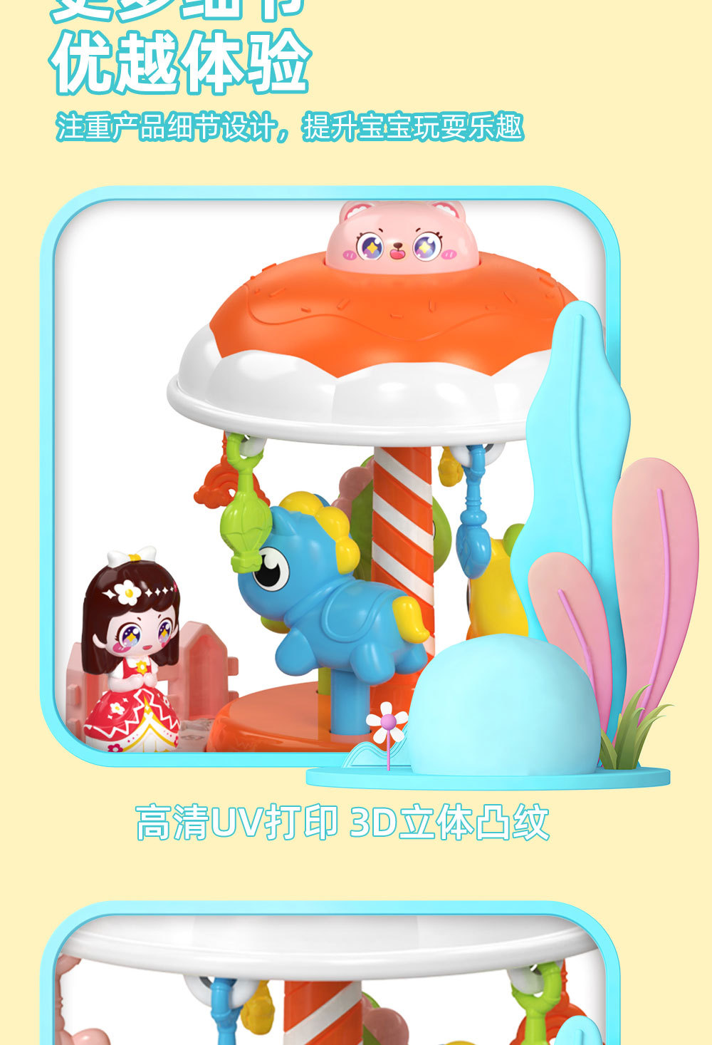 | Desarrollo de la capacidad | Emoción, visión, desarrollo intelectual, reptiles, Movimiento de manos y cerebro, agarre, sentidos, coordinación mano - ojo, otros desarrollos de habilidades, juguetes interactivos, audición, comunicación padre - hijo, cultivo de intereses |