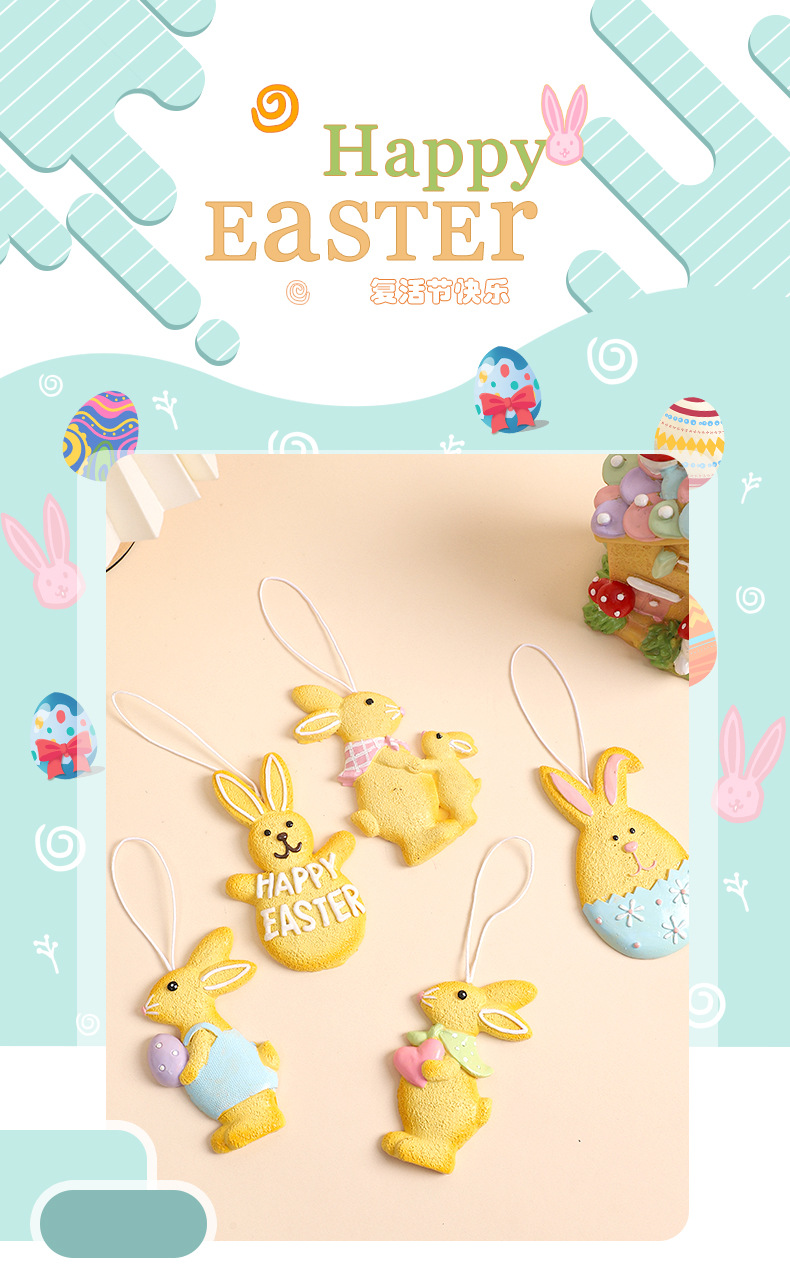 Decoraciones transfronterizas de Pascua ins pan de jengibre creativo resurrección de conejo colgante de resina regalos de decoración para el hogar