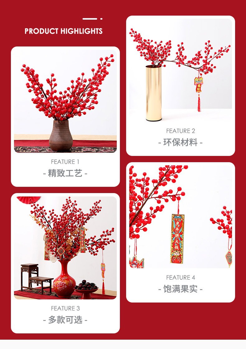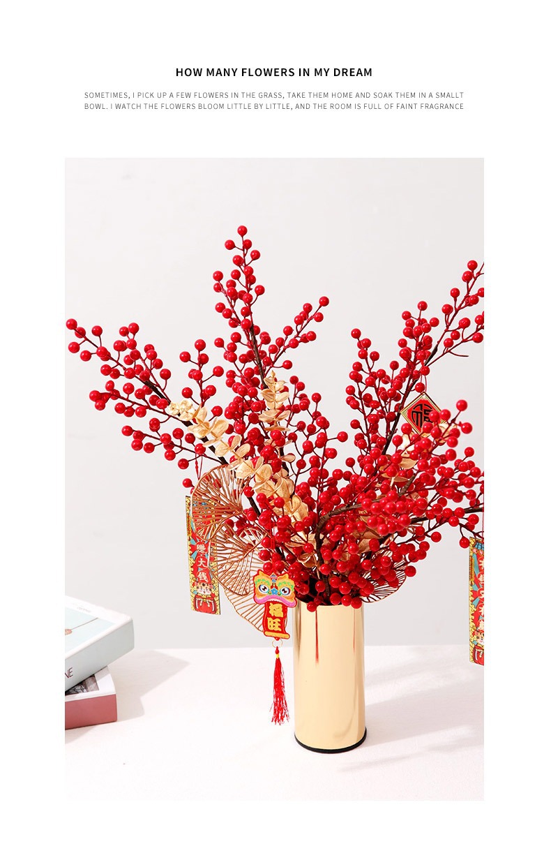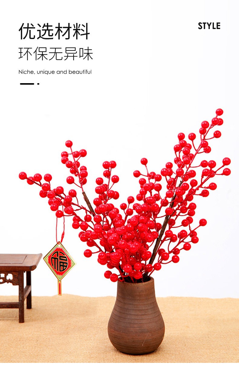 | Modelo de especificación | 12 frutos-frutos rojos individuales/1 rama; ver opciones,12 frutas-3 frutas rojas/1 rama; ver opciones,2 cabezas de granada amarilla 30cm/1 rama; ver opciones,Pluma de pavo real: una sola/1 rama; ver opciones,Hortensia de madera individual/1; ver opciones,Bola de cebolla verde/1; ver opciones,Cola de fénix/1 rama 70-80cm; ver opciones,3D Phalaenopsis 9 cabezas 98cm/1 rama; ver opciones,Fa Caifu/1; ver opciones |