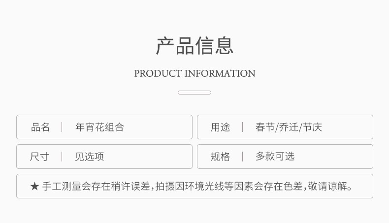 | Colores | Ginkgo biloba individual/1,Un solo eucalipto/1,Lotus/1,3 hortensias de madera/1,7 mariposas pequeñas/1,Chalé de dinero-3 horquillas/1 rama,Pluma de pavo real-5 puntas/1 rama,Tres cabezas de loto/1,Multi-eucalis/1,Hojas de tortuga/1 rama,2 caquis de 30cm/1,2 granadas amarillas 30cm/1,Monda de cobre individual/1,Amor pequeño único/1,Bola de cebolla verde/1,4 frutos de granada pequeña 12cm/1 rama,6 granadas rojas 80cm/1,2 cabezas de fruta dorada 30cm/1 rama,5 caquis 80cm/1,Pluma de pavo real-una sola/1 rama,12 frutos-6 frutos rojos/1 rama,Cuentas individuales/1,12 frutos-3 frutos rojos/1 rama,12 frutos rojos individuales/1,2 granadas rojas 30cm/1,2 naranjas amarillas 30cm/1,Bola de chalota individual/1,5 cebollas/1,Palabra de bendición individual/1,Phalaenopsis individual/1,Cola de fénix/1 pieza 70-80cm,Hojas individuales en forma de corazón/1 rama,3 puntas de ginkgo biloba/1 rama,12 frutos-9 frutos rojos de tenedor/1 rama,Hortensia de madera individual/1,9 phalaenopsis hueca/1,3D Phalaenopsis 9 cabezas 98cm/1 rama,Pequeña Persia/1,Fortuna/1 |