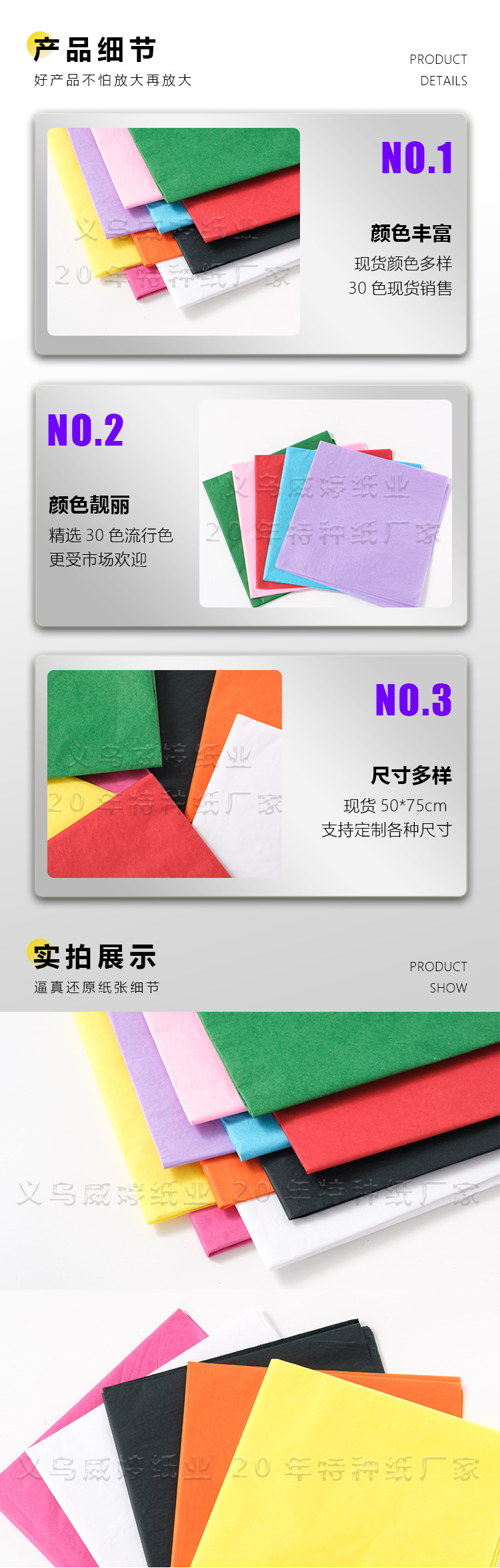 | Especificación | Tamaño 50*75m por pedido 490-500zhang,blanco,1101 rosa claro,1103 rosa,1201 rosa roja,1301 rojo,1403 magenta,2101 albaricoque,2304 naranja,3101 amarillo limón,3201 dorado,3304 blanco lechoso,3401caqui,4102 verde claro,4105 fruta verde,4301 verde,5201 negro,6102 azul cielo,6104 lago azul,6202 azul pavo real,6301 azul oscuro,7102 violeta claro,7305 morado oscuro,7503 vino tinto,8403café,14g copia doble blanca 50*66, alrededor de 500 hojas por pedido |