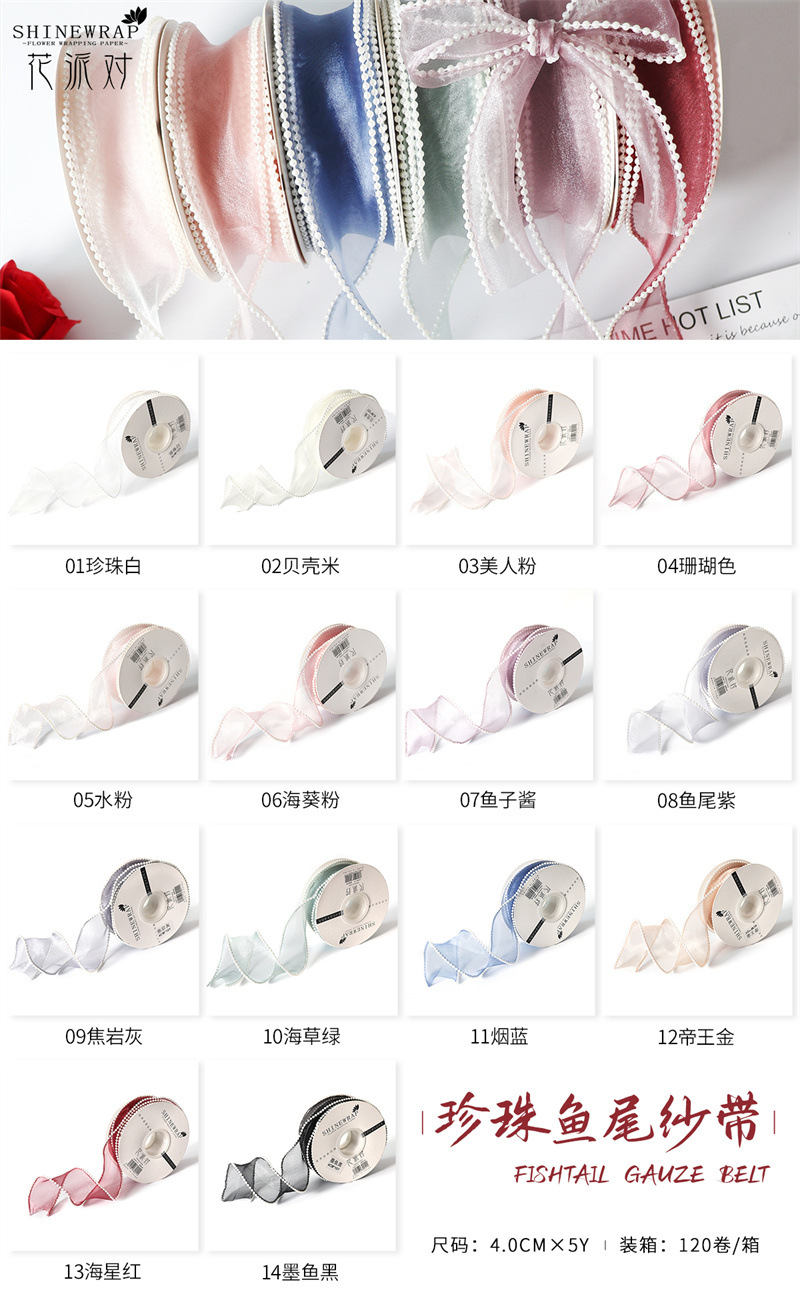 | Especificaciones y modelos | Arroz conchas; 4CM * 5 yardas, oro imperial; 4CM * 5 yardas, verde de algas marinas; 4CM * 5 yardas, polvo de anemia de mar; 4CM * 5 yardas, rojo de estrella de mar; 4CM * 5 yardas, ceniza de roca de coque; 4CM * 5 yardas, negro de caima; 4CM * 5 yardas, coral; 4CM * 5 yardas, polvo de agua; 4CM * 5 yardas, azul de humo; 4CM * 5 yardas, púrpura de cola de pez; 4CM * 5 yardas, caviar; 4CM * 5 yardas, blanco perla; 4CM * 5 yardas |