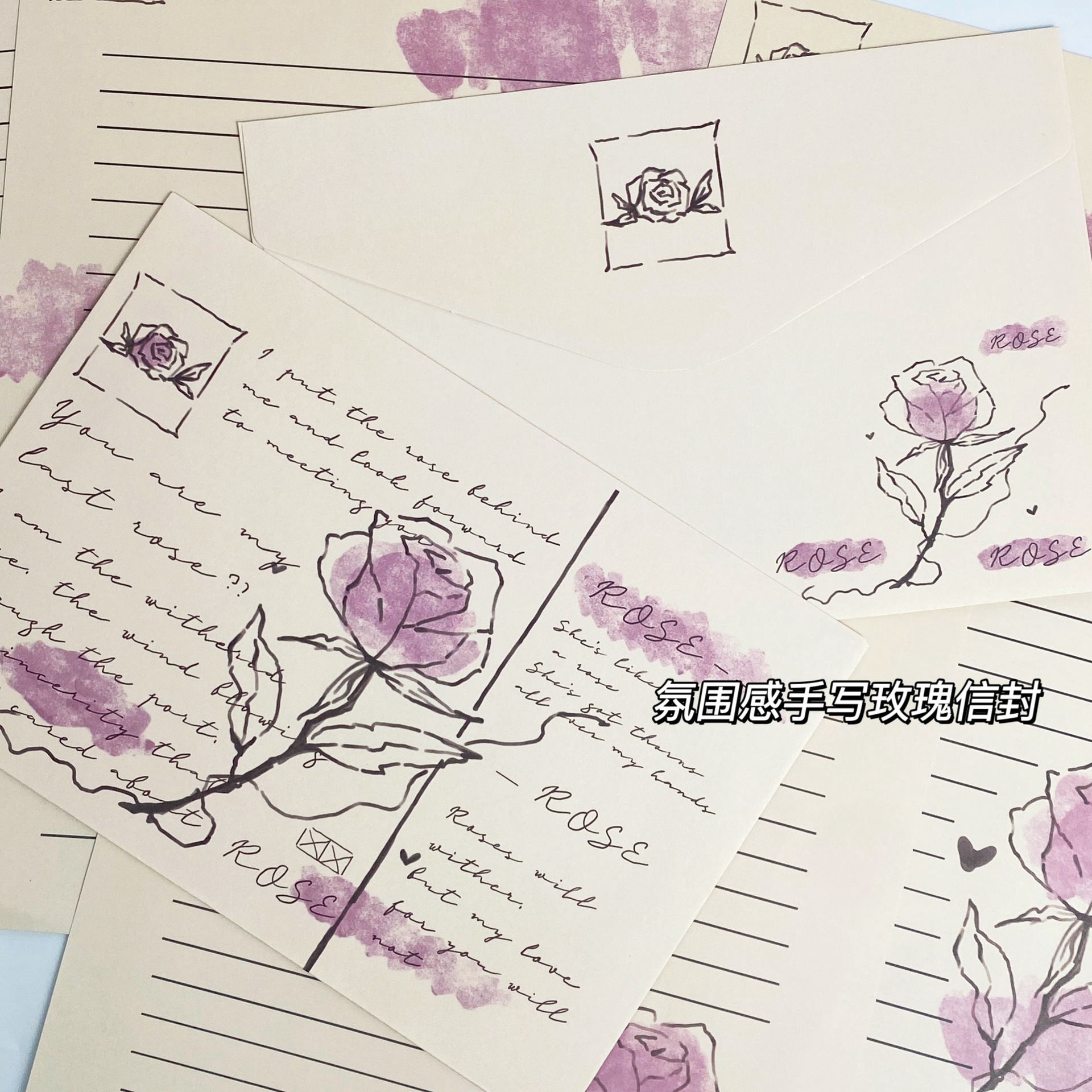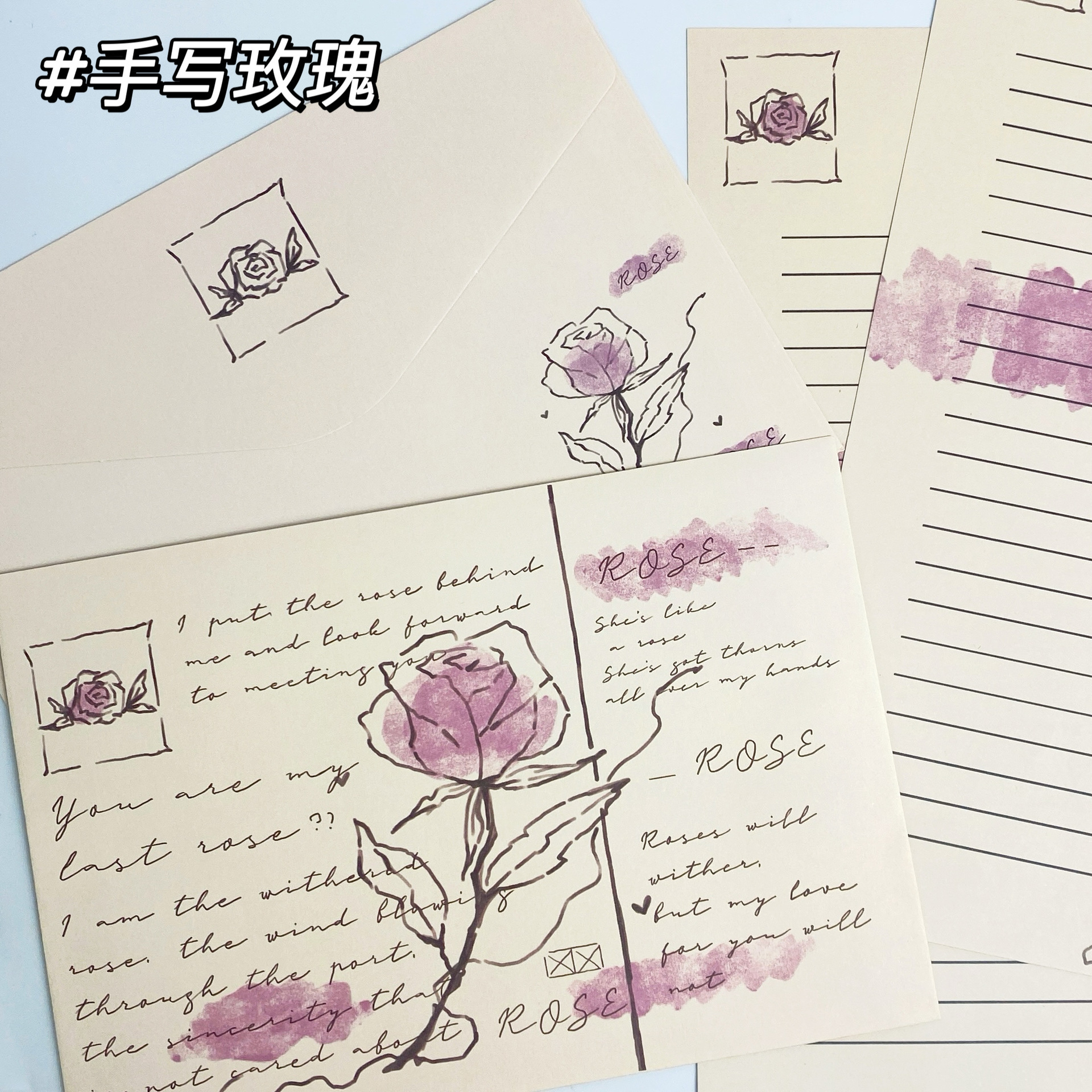 Nuevas series de rosas combo sobres de papel ins estudiantes escritos a mano creativos felicitaciones festivas románticas tarjetas de conmemoración