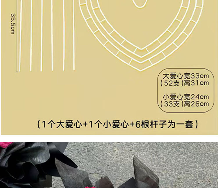 | Color | 3 juegos de artefactos de ramos de amor / 6 paquetes 3 grandes y 3 pequeños, siempre 3 juegos de artefactos de 18 años / 1 paquete, 3 juegos de artefactos de ramos de luna / 1 paquete |