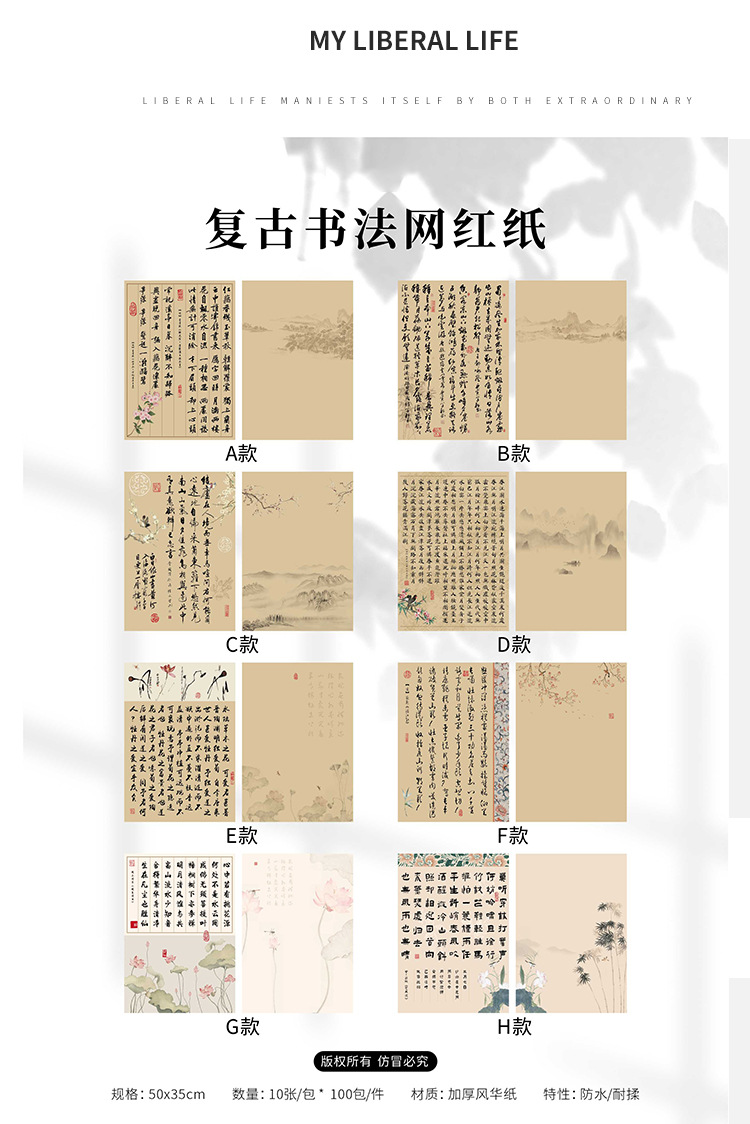 | Especificaciones y modelos | Párrafo a; 50 * 35cm10 hojas / paquete, modelo b; 50 * 35cm10 hojas / paquete, modelo c; 50 * 35cm10 hojas / paquete, modelo d; 50 * 35cm10 hojas / paquete, modelo e; 50 * 35cm10 hojas / paquete, modelo f; 50 * 35cm10 hojas / paquete, modelo g; 50 * 35cm10 hojas / paquete, modelo h; 50 * 35 cm 10 hojas / paquete |