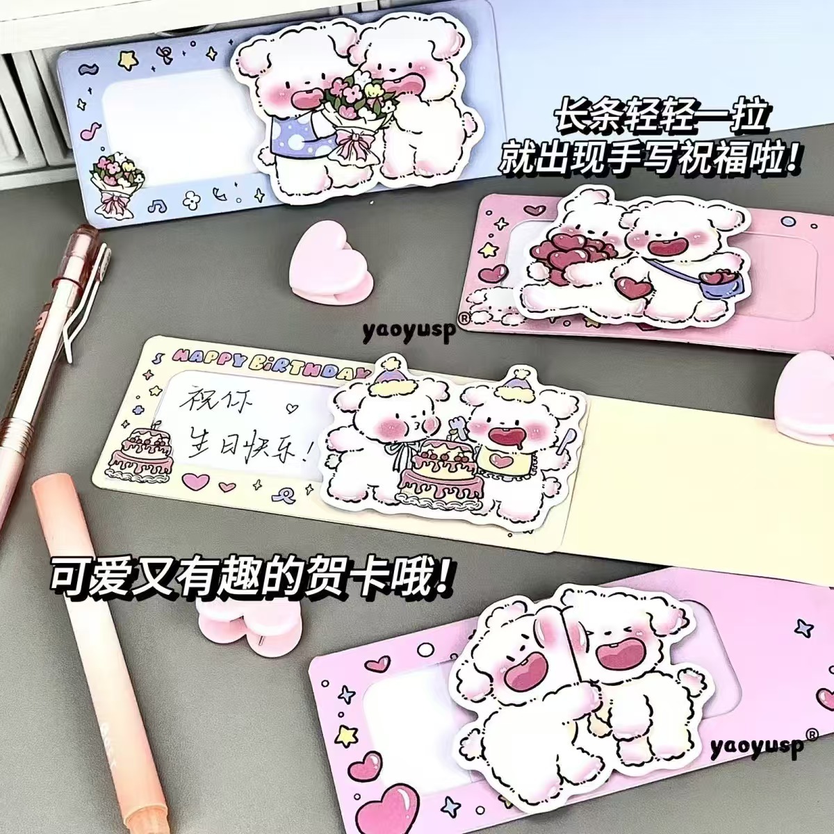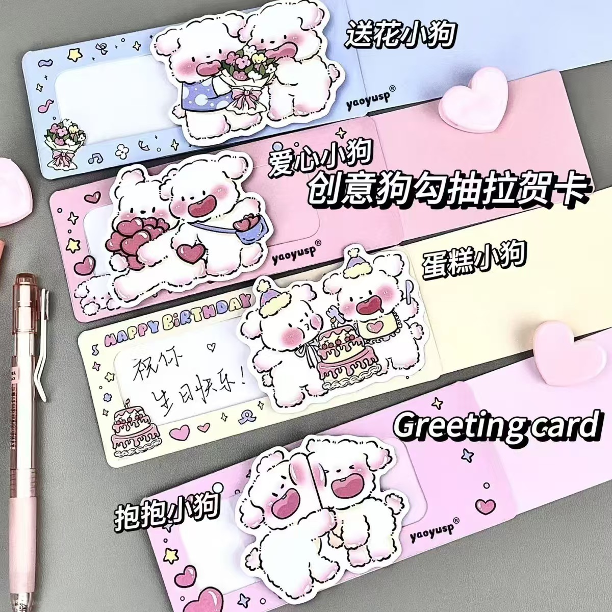 Nuevo creativo lindo cachorro dibujo tarjeta de felicitación tridimensional tarjeta de felicitación pareja línea de cumpleaños confesión cachorro bendición