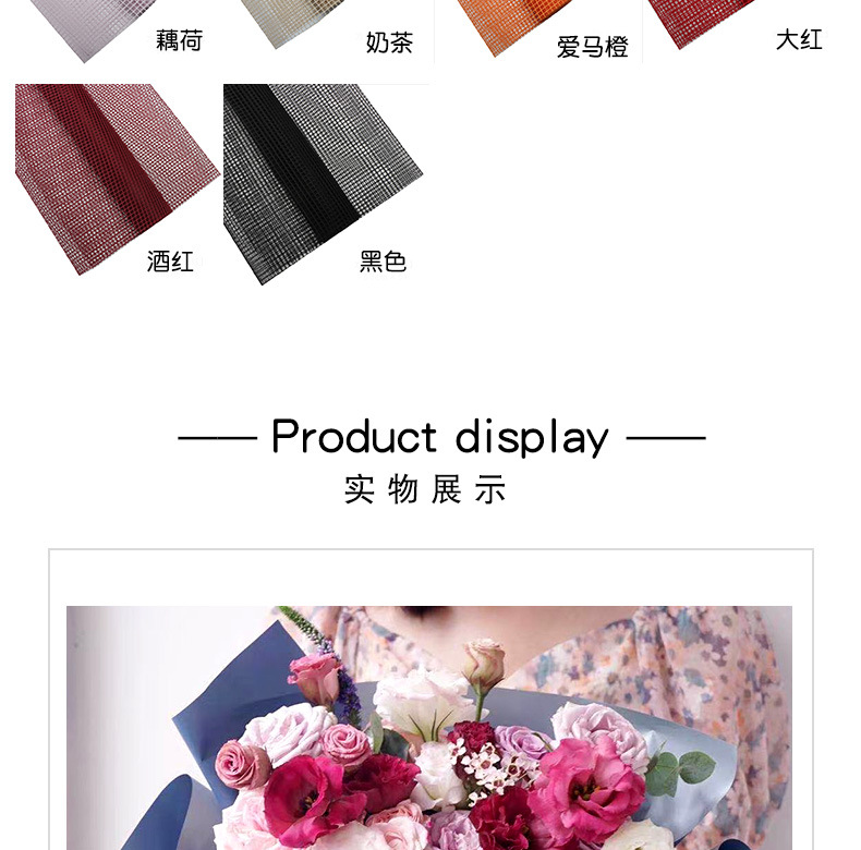 | Modelo de especificación | Polvo de raíz de loto; 50cm * 5Y/rollo,Blanco arroz; 50cm * 5Y/rollo,Negro; 50cm * 5Y/rollo,Polen de flores de cerezo; 50cm * 5Y/rollo,Burdeos; 50cm * 5Y/rollo,Té con leche; 50cm * 5Y/rollo,Loto; 50cm * 5Y/rollo,Gris estrellado; 50cm * 5Y/rollo |
