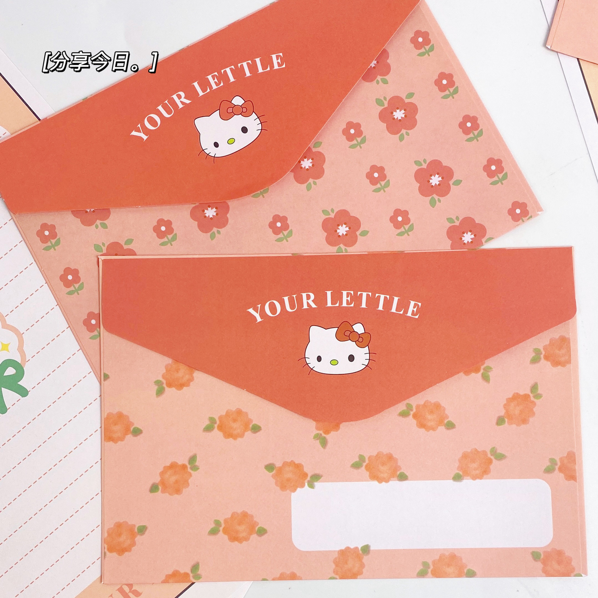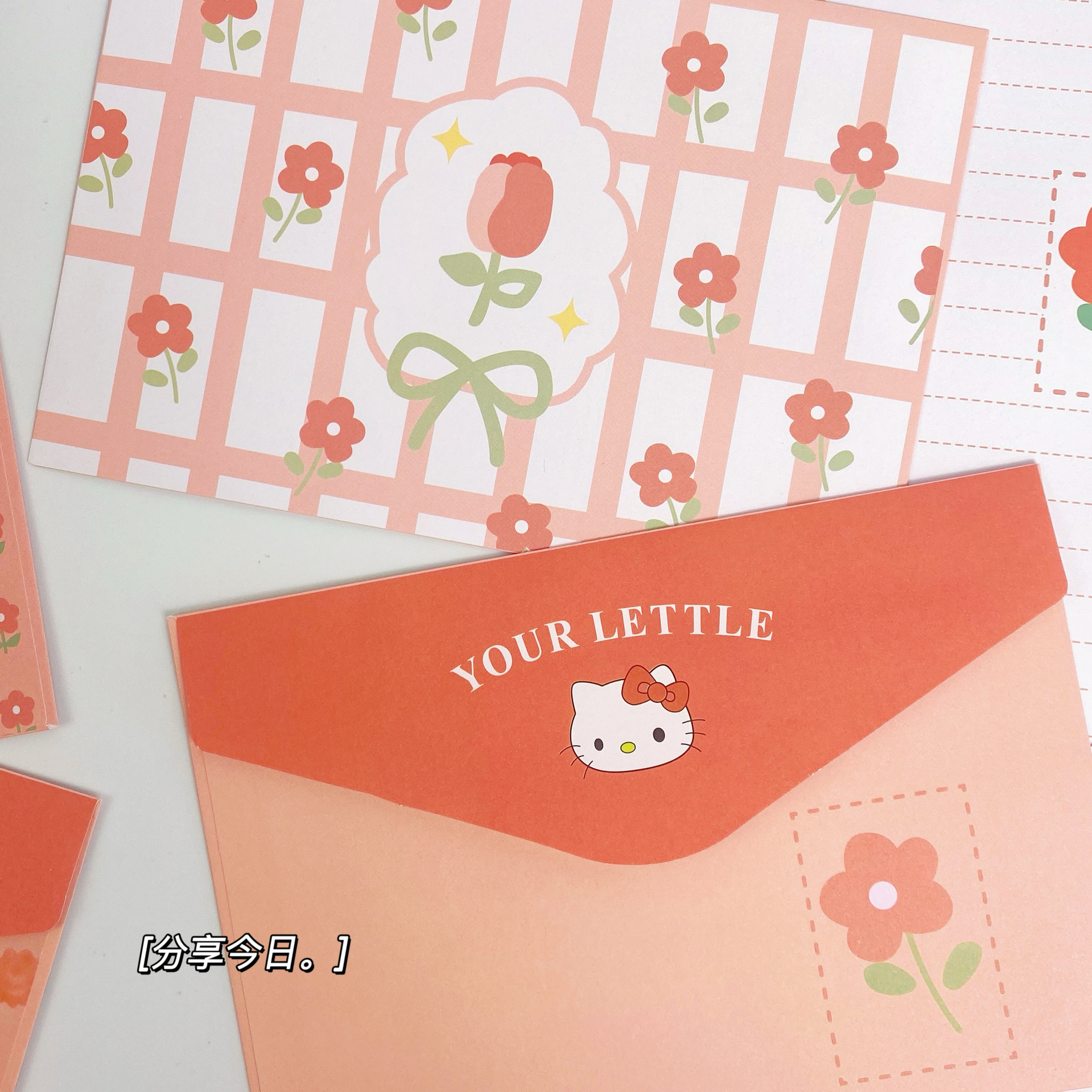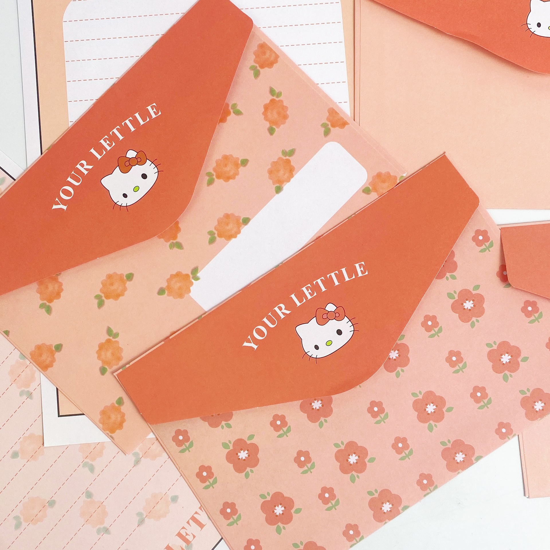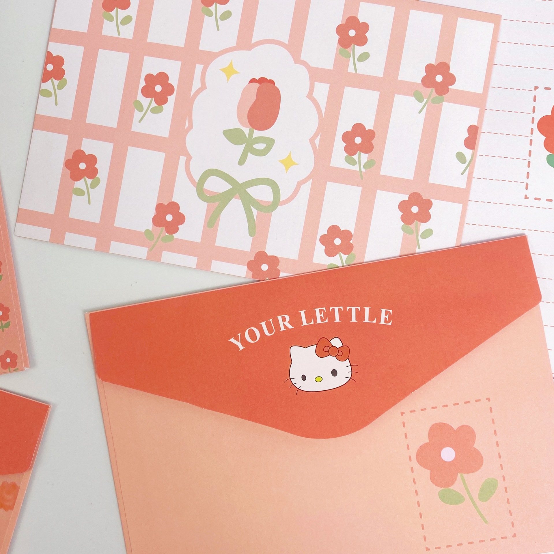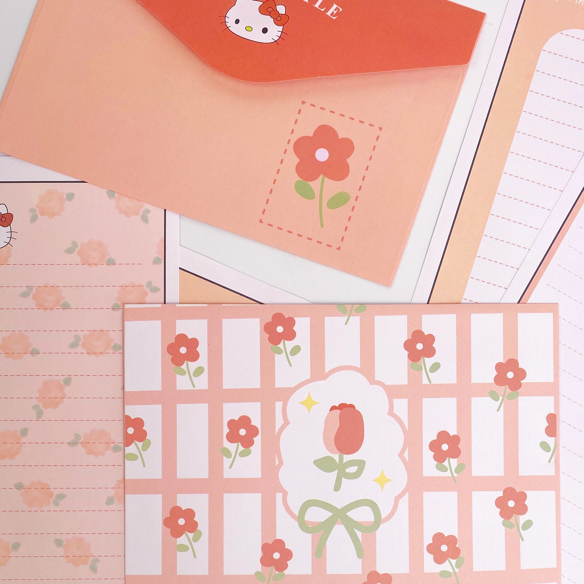 KT sobre de piel de gato papel de carta en viento animado lindo conjunto de dibujos animados papel de carta creativo bendición pequeño libro rojo idéntico
