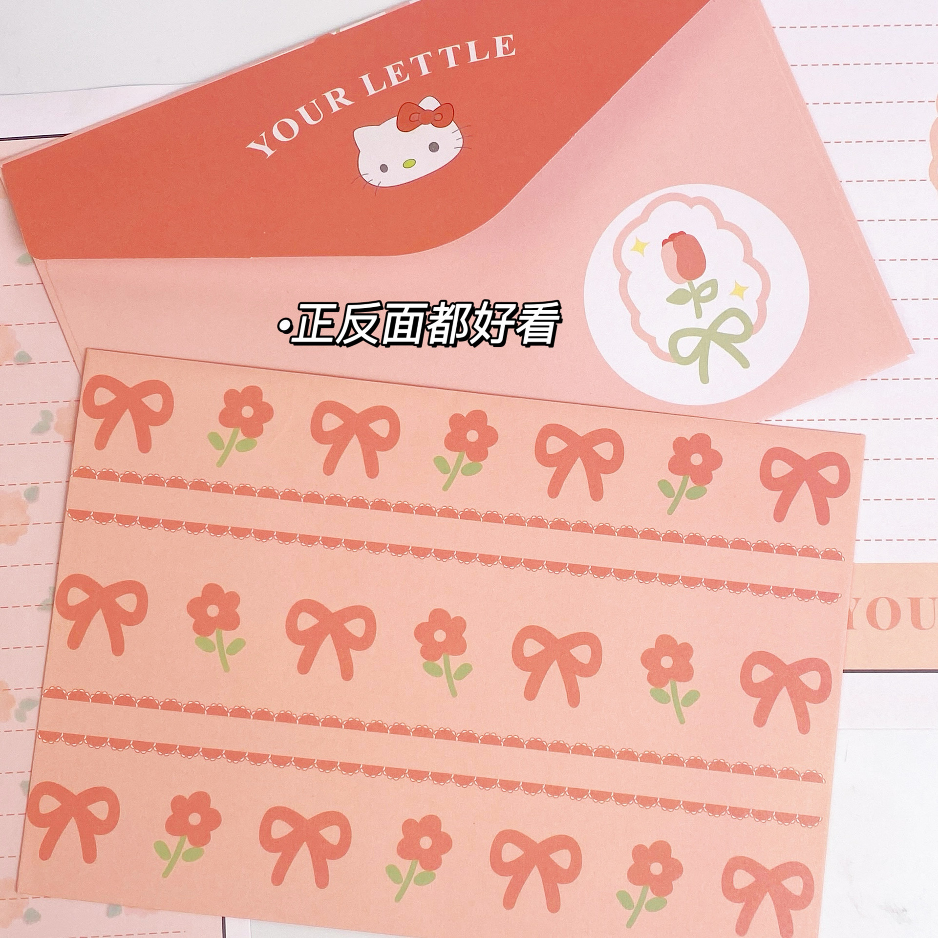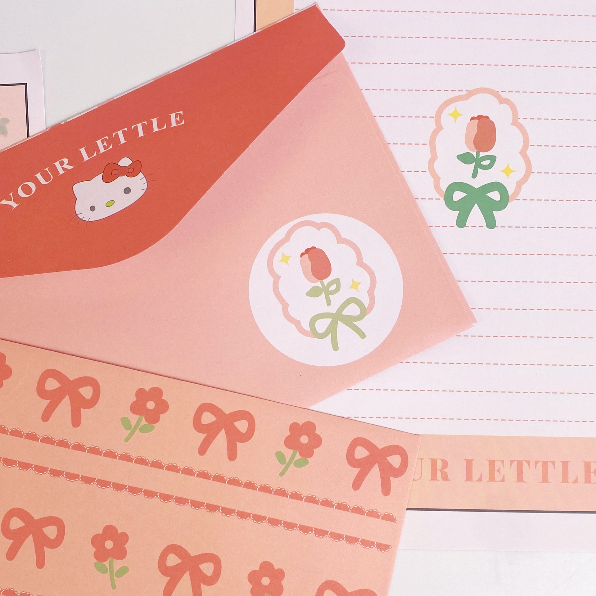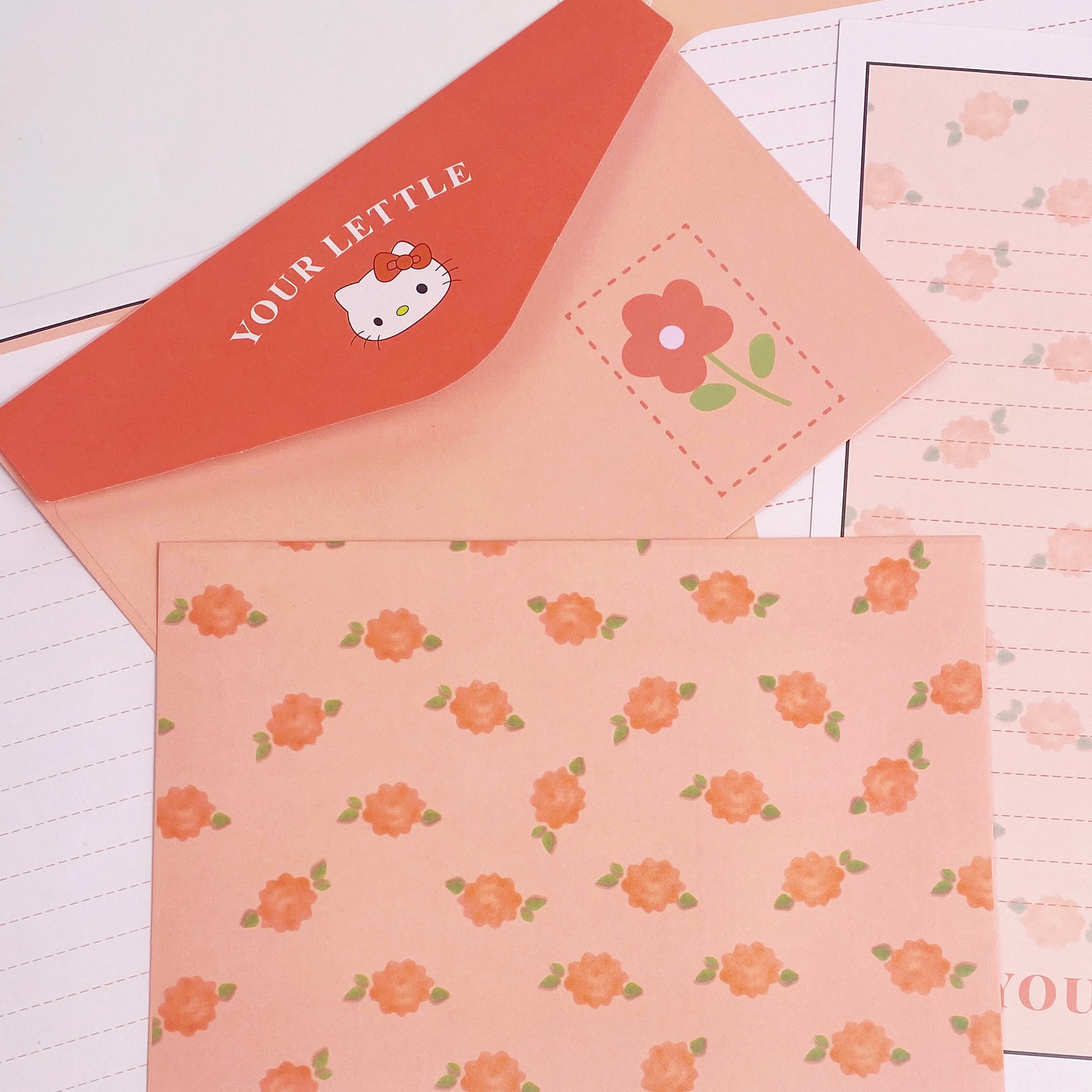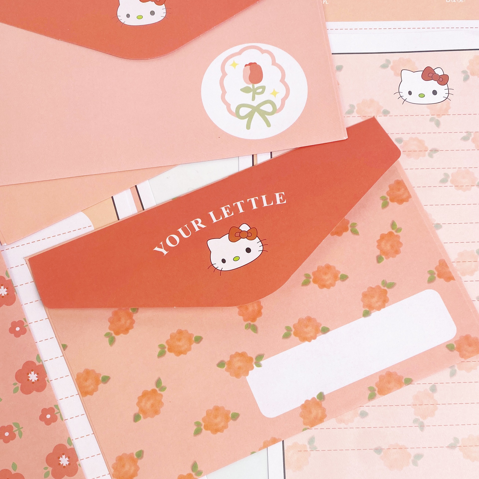 KT sobre de piel de gato papel de carta en viento animado lindo conjunto de dibujos animados papel de carta creativo bendición pequeño libro rojo idéntico