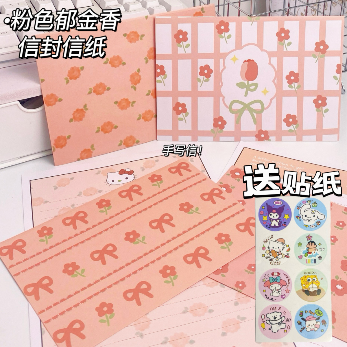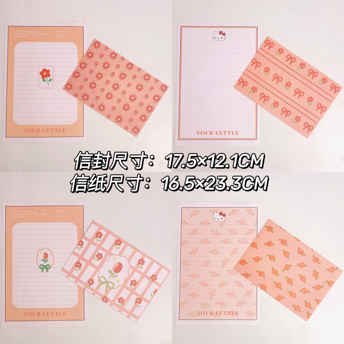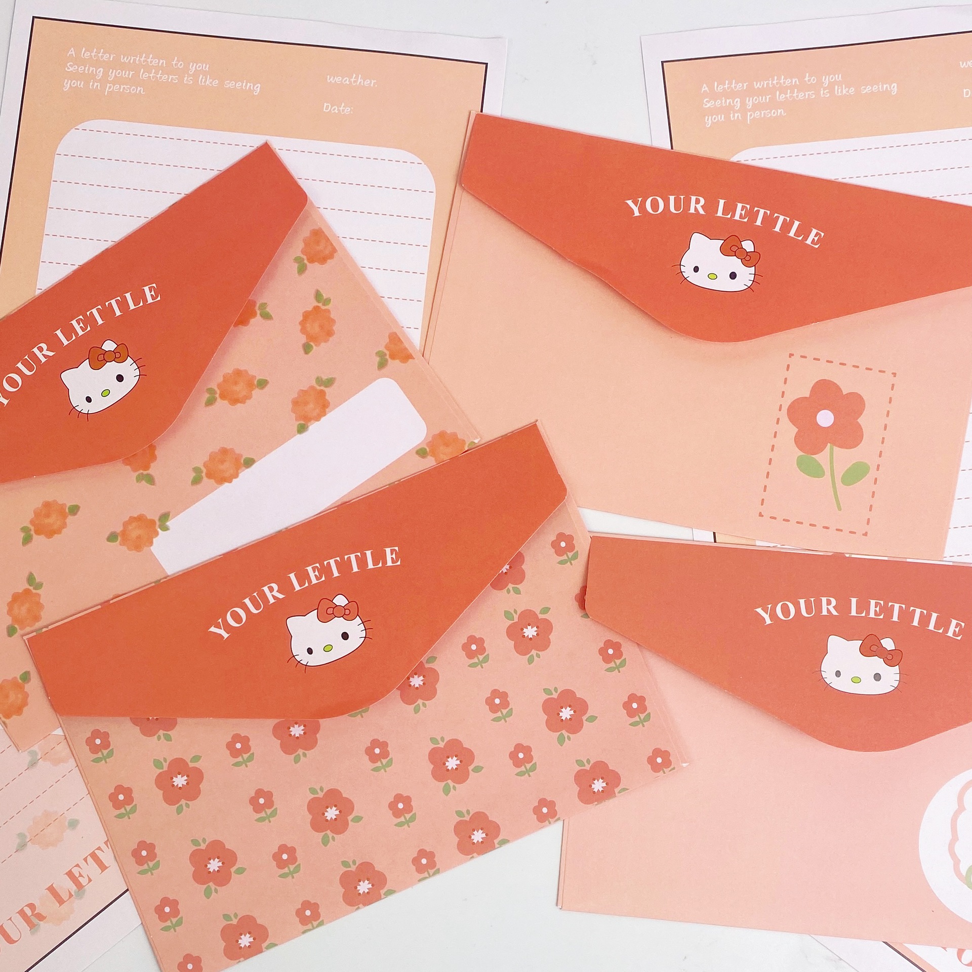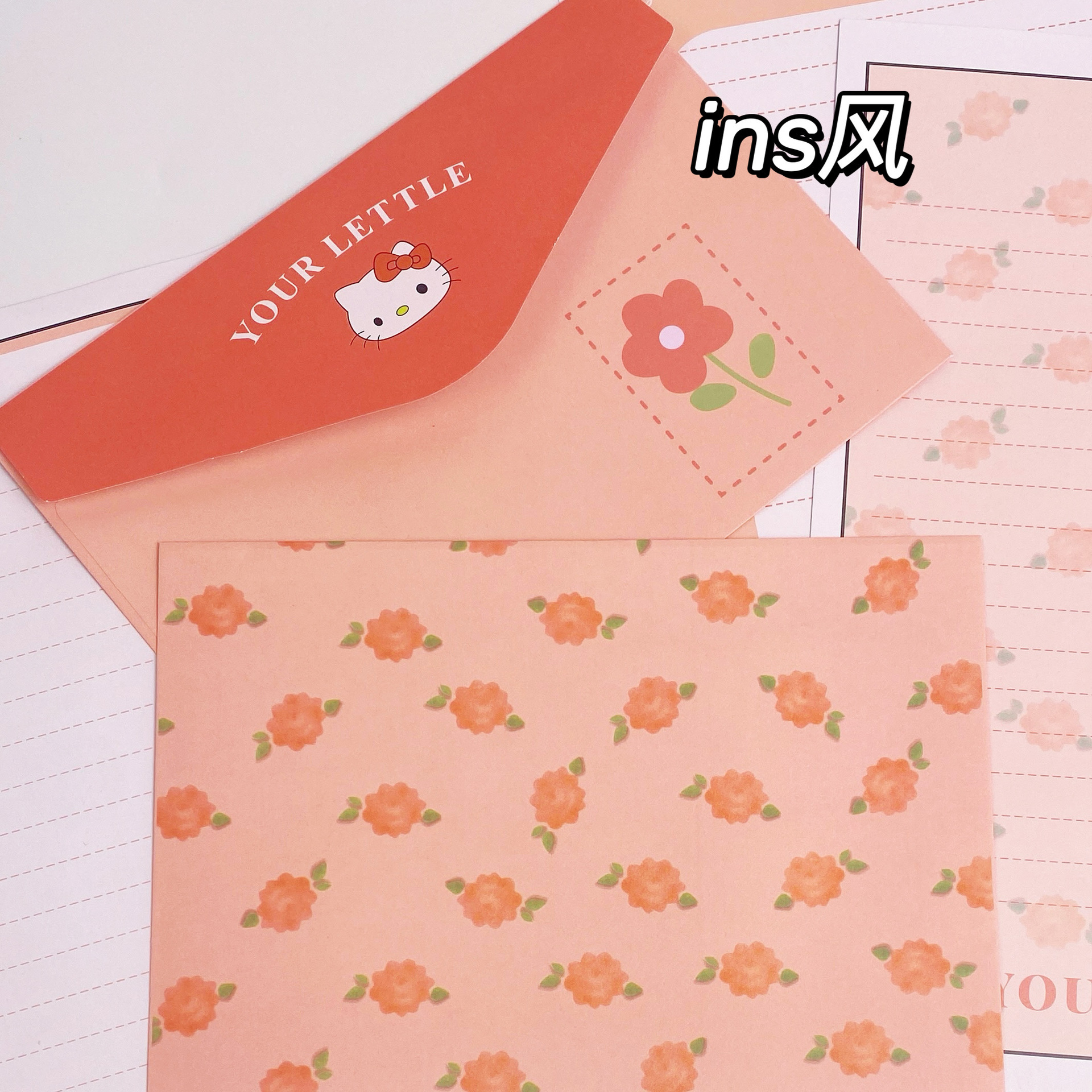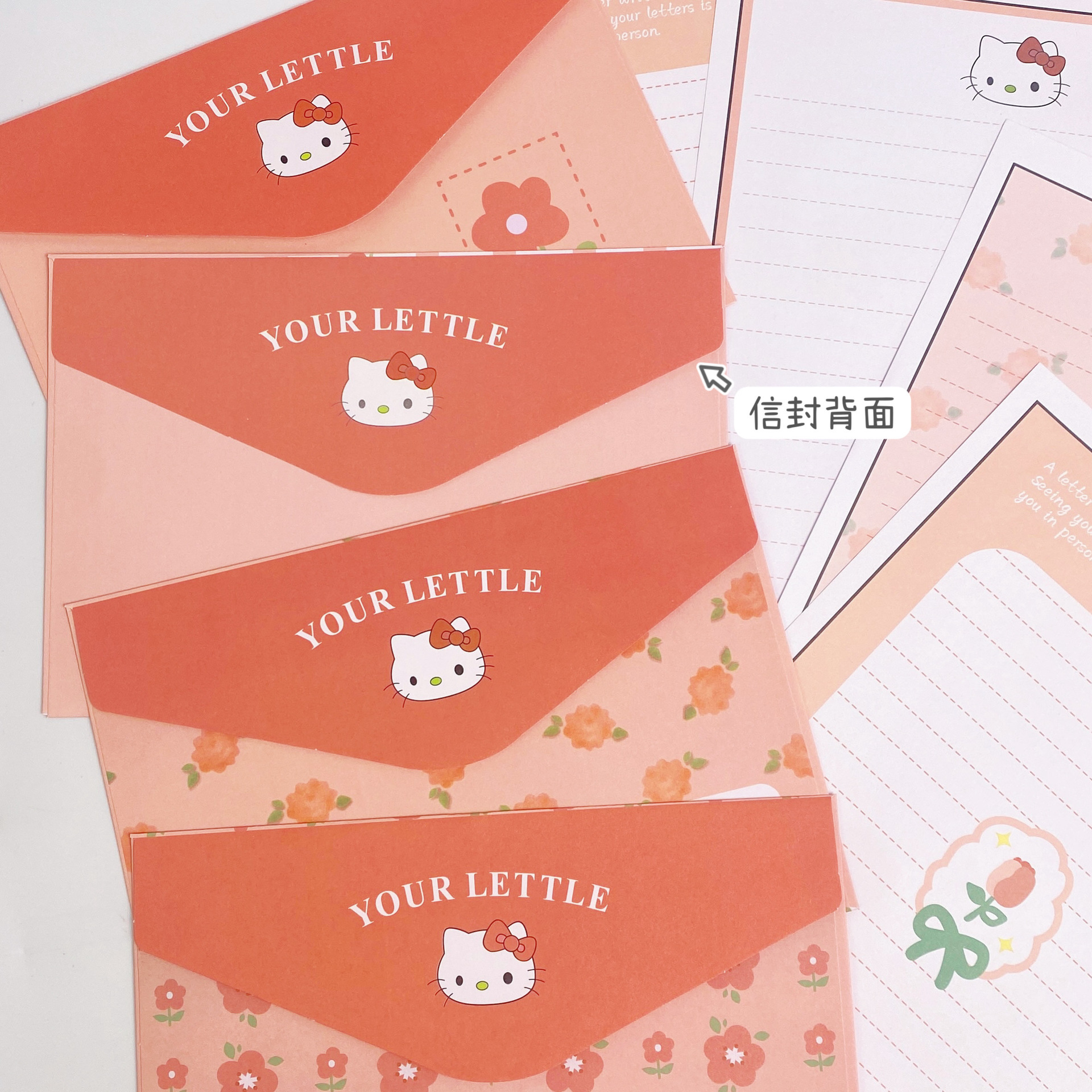 KT sobre de piel de gato papel de carta en viento animado lindo conjunto de dibujos animados papel de carta creativo bendición pequeño libro rojo idéntico