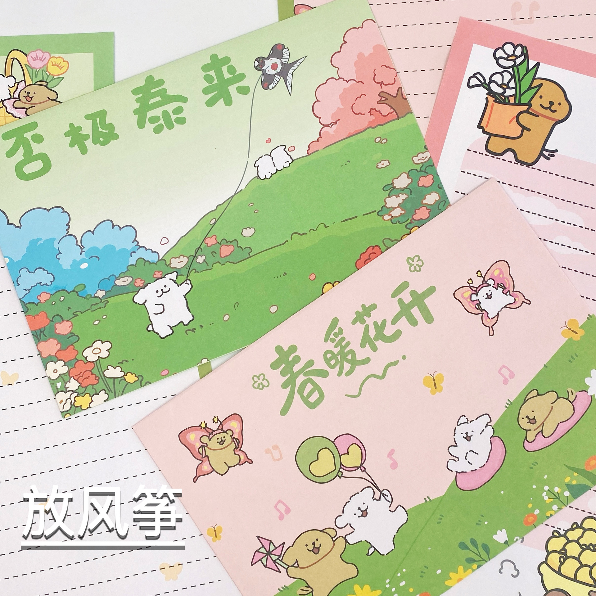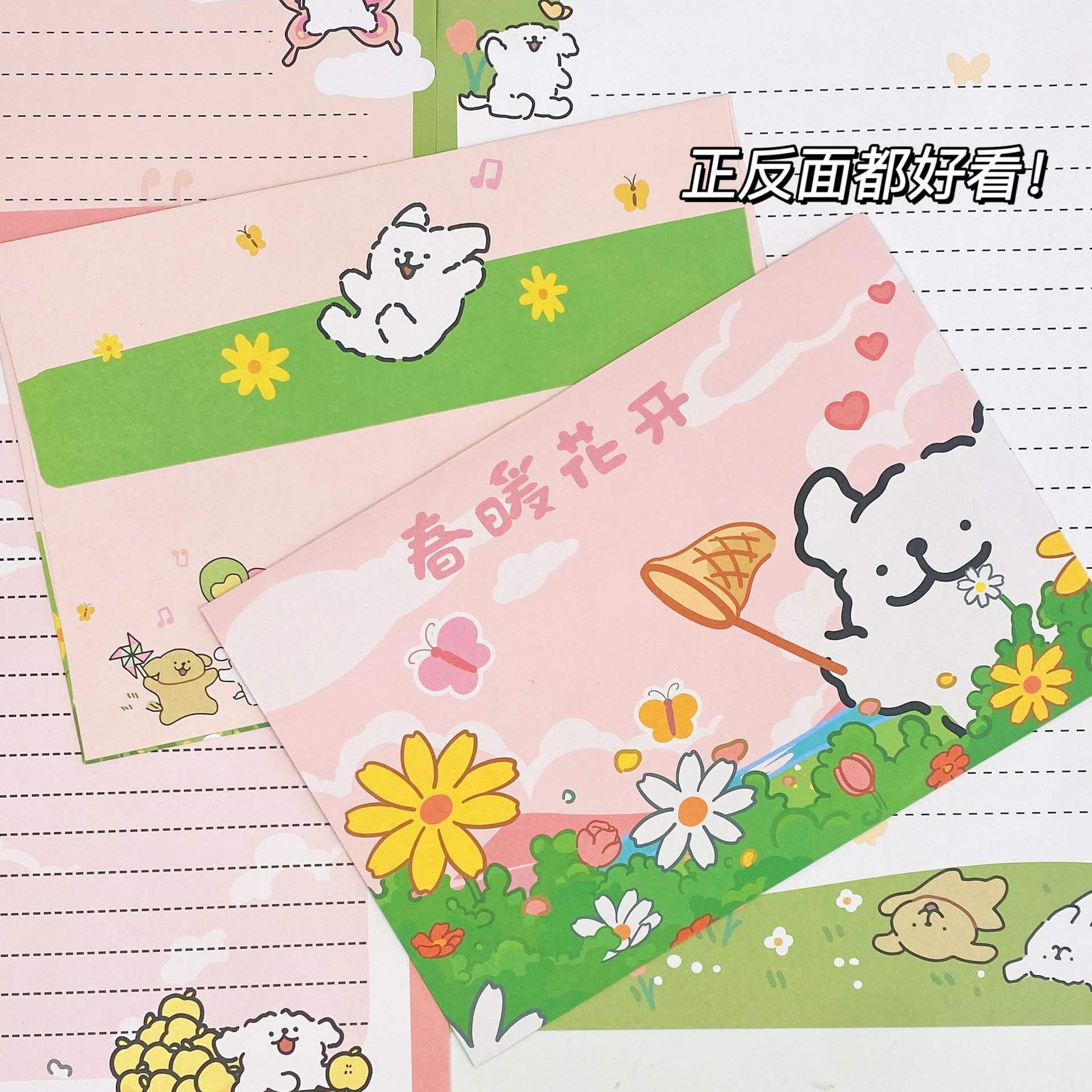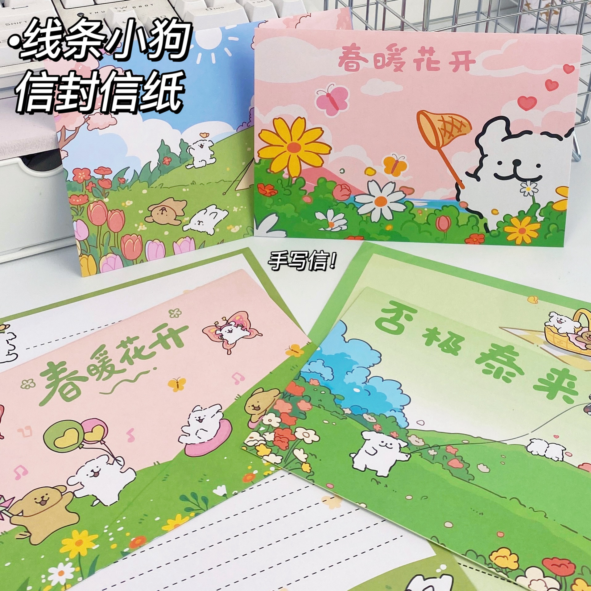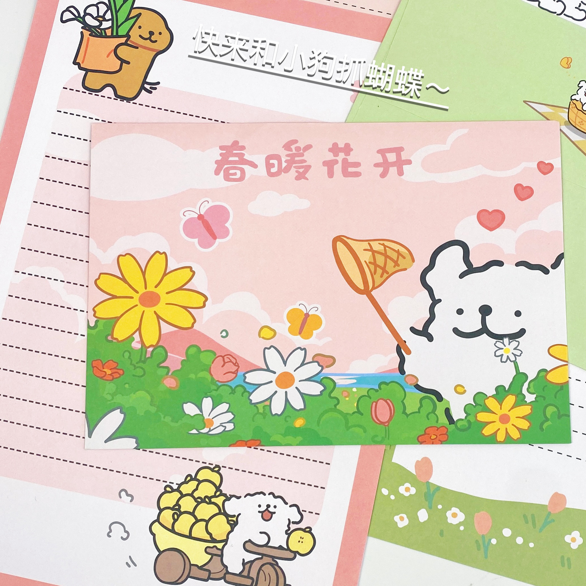 Cachorro de línea de primavera [4 sobres + 4 papel de carta]