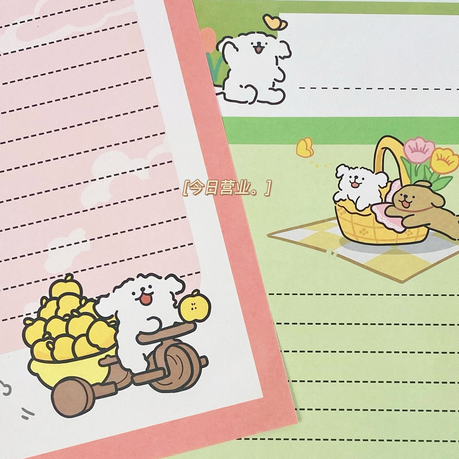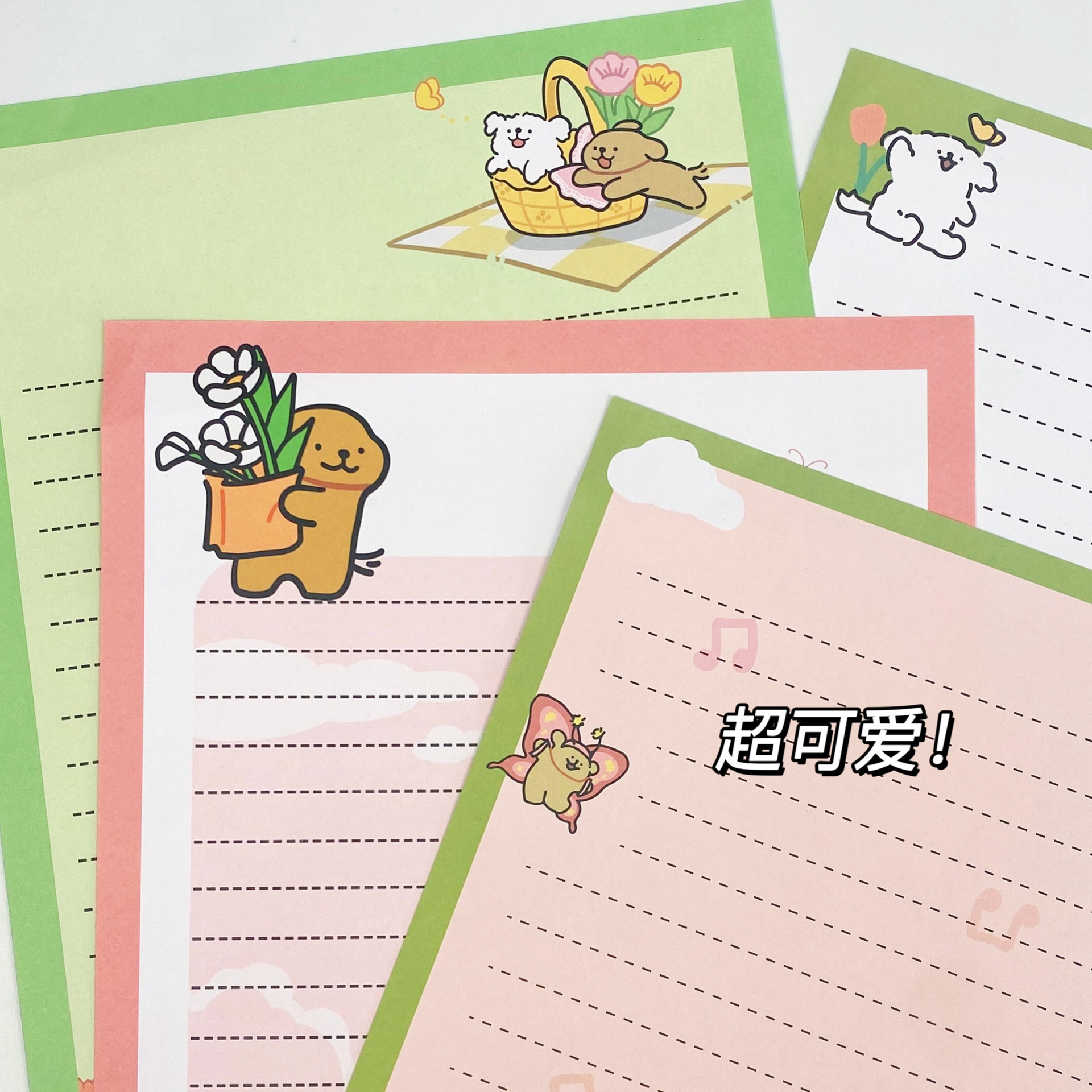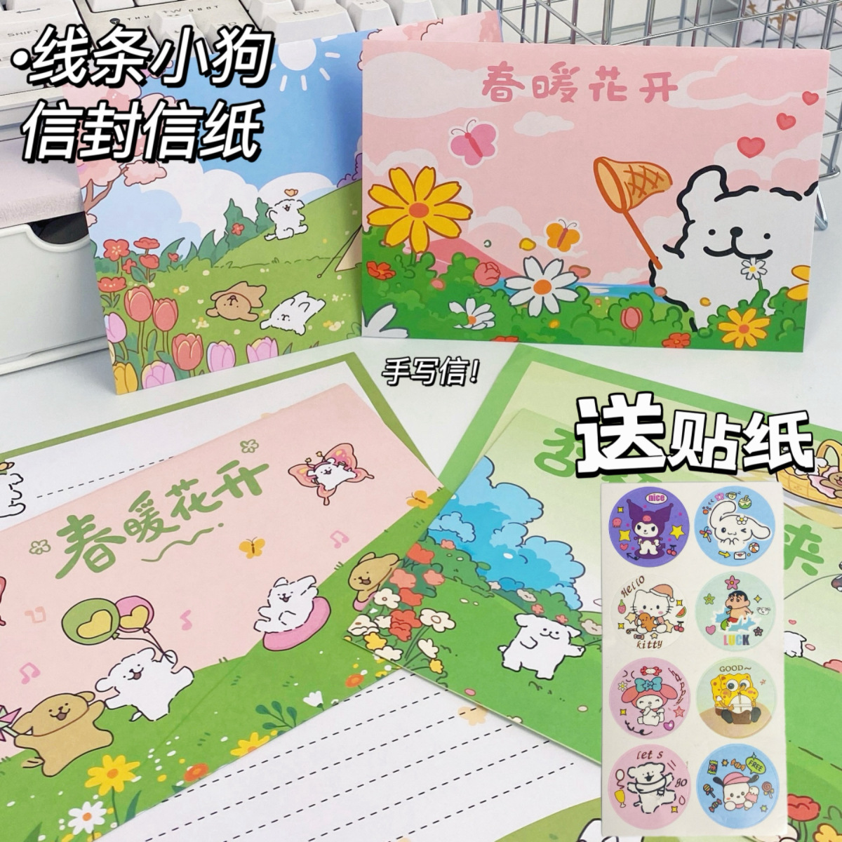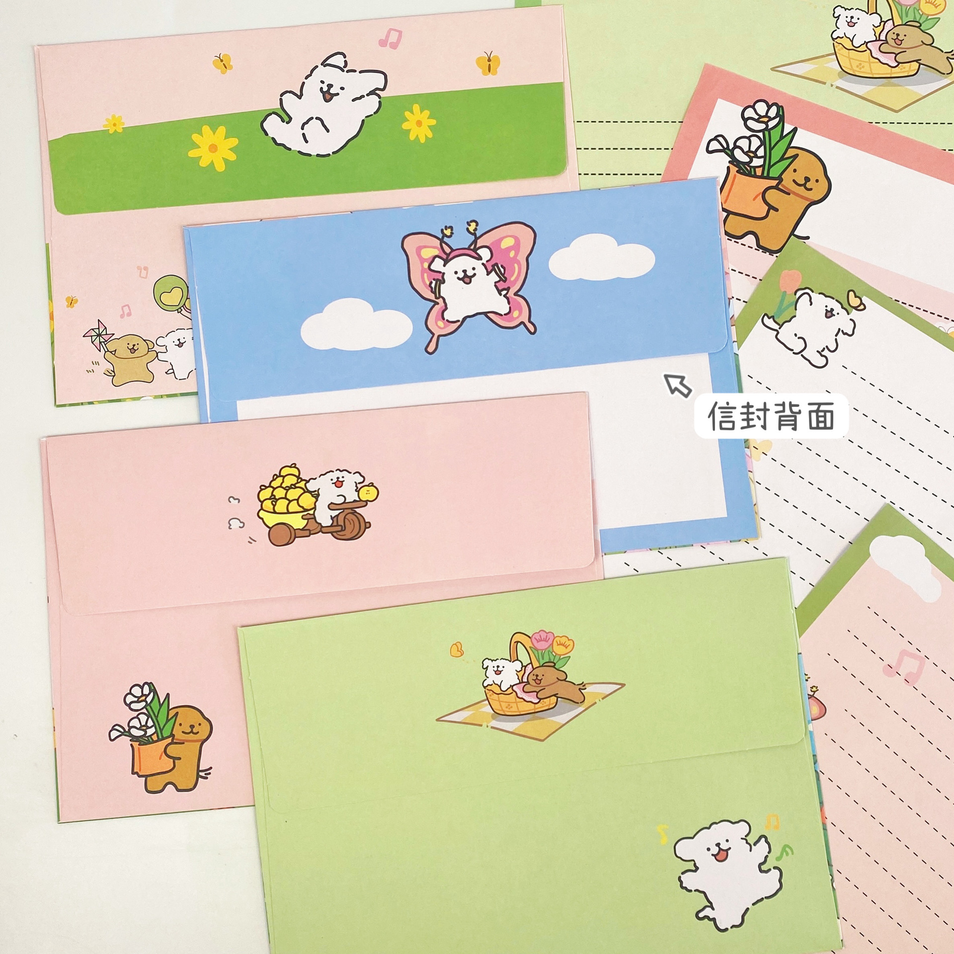 Cachorro de línea de primavera [4 sobres + 4 papel de carta]