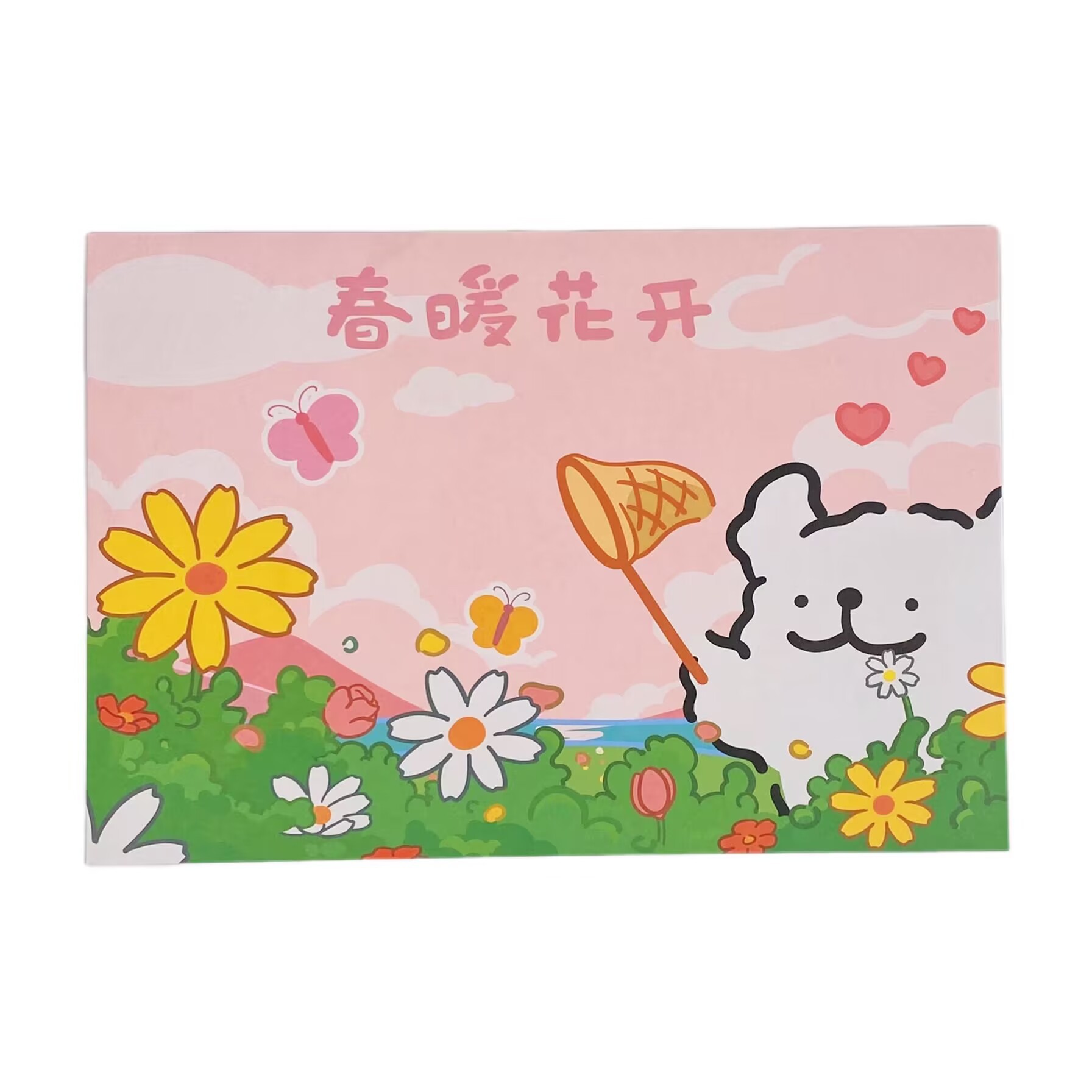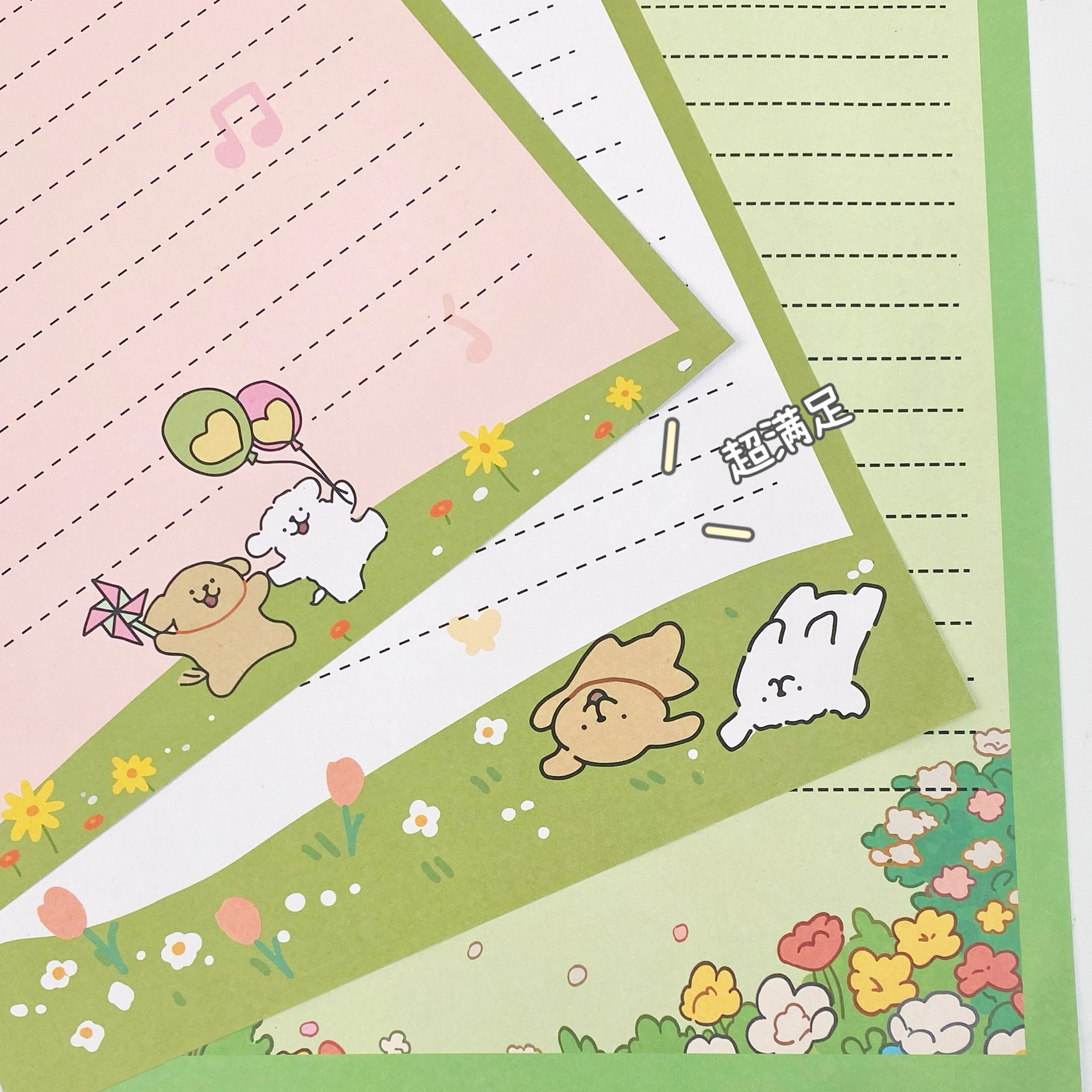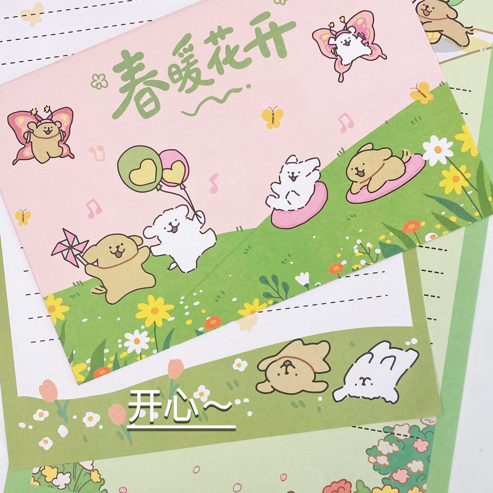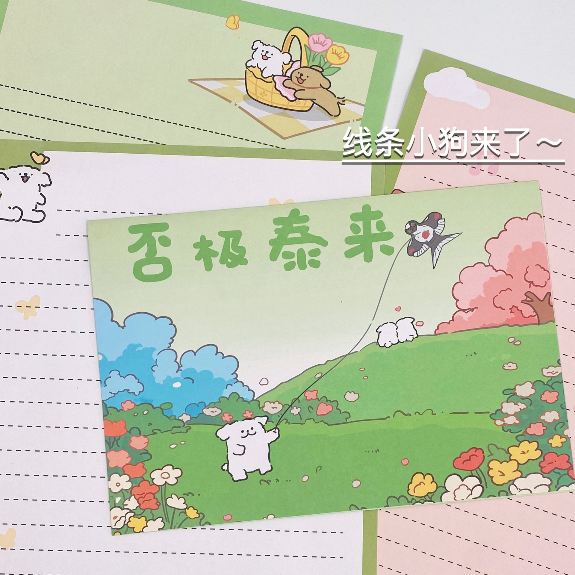 Primavera líneas de perros sobre papel de carta genérico lindo caricatura tarjeta de cumpleaños mensaje amigo bendición sobre lindo