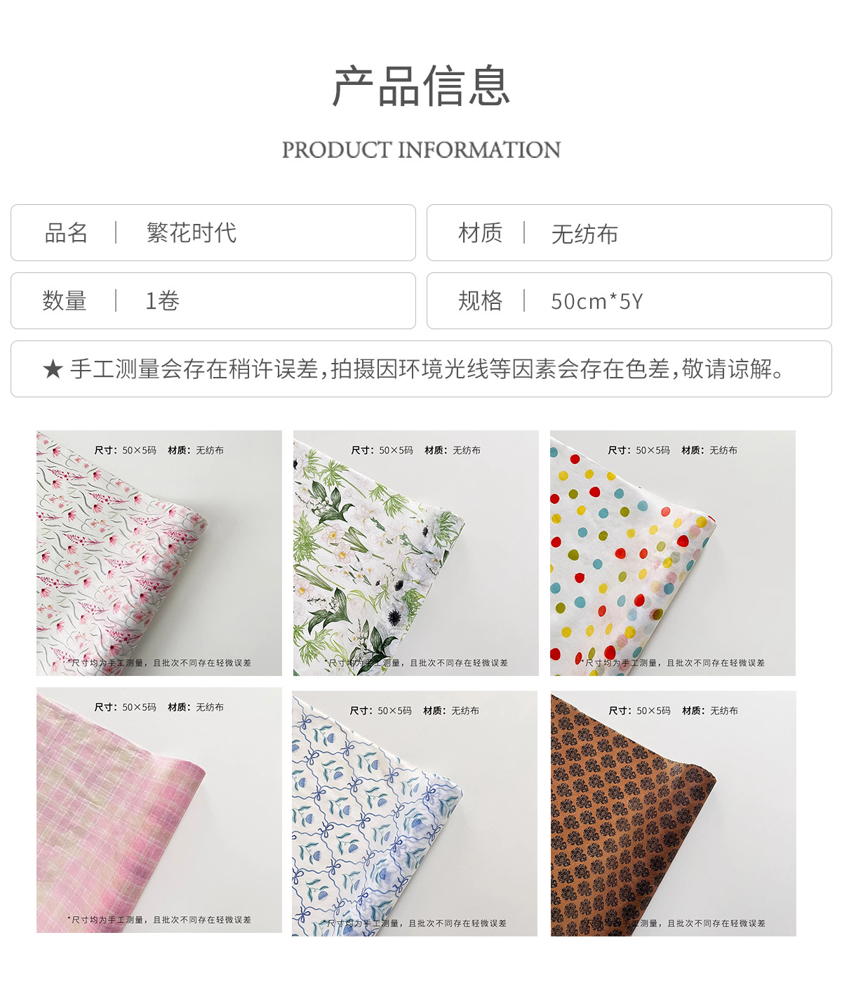 | Modelo de especificación | Ribbon Tulip [1 rollo]; 50cm * 5 yardas,Patrón de cuadros suave [1 rollo]; 50cm * 5 yardas,Punto de onda de dopamina [1 volumen]; 50cm * 5 yardas,Lirio de los valles blanco y verde [1 rollo]; 50cm * 5 yardas,Pink Gesang [1 rollo]; 50cm * 5 yardas,Tótem retro [1 rollo]; 50cm * 5 yardas |
