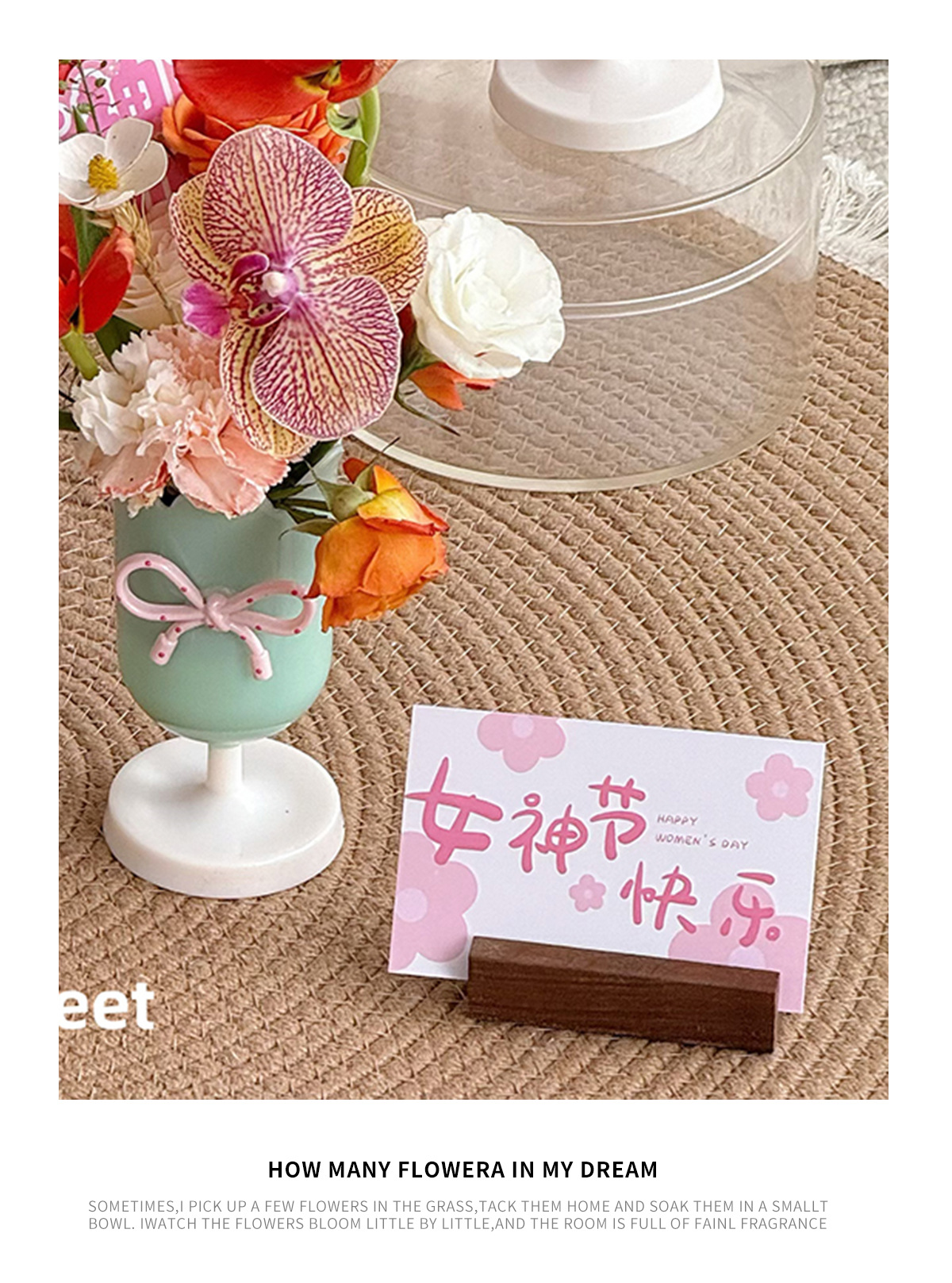 Feliz día de la diosa de marzo 8 tarjetas de felicitación encantadoras tarjetas de decoración de flores mensajes tarjetas de felicitación materiales de floristería