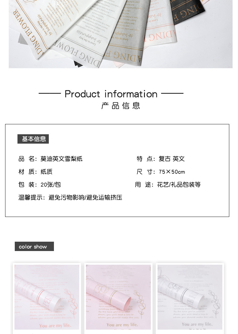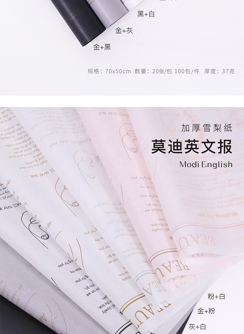 | Modelo de especificación | Blanco en polvo; 75*50CM 20 hojas/paquete,Blanco y negro; 75*50CM 20 hojas/paquete,Gris; 75*50CM 20 hojas/paquete,Polvo de oro; 75*50CM 20 hojas/paquete,Oro negro; 75*50CM 20 hojas/paquete,Gris de oro; 75*50CM 20 hojas/paquete |