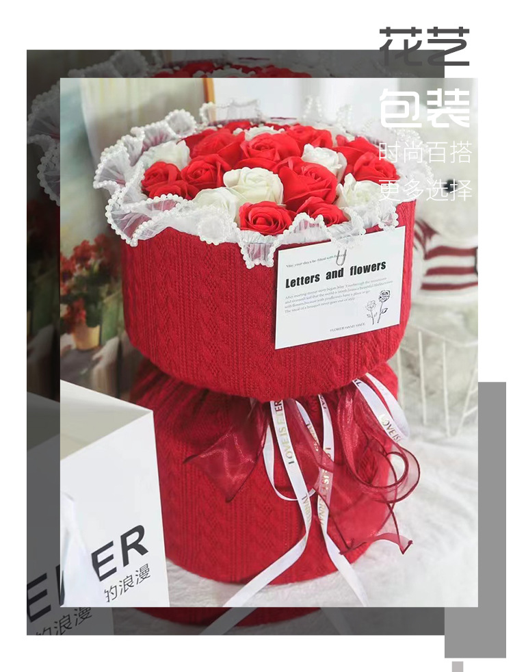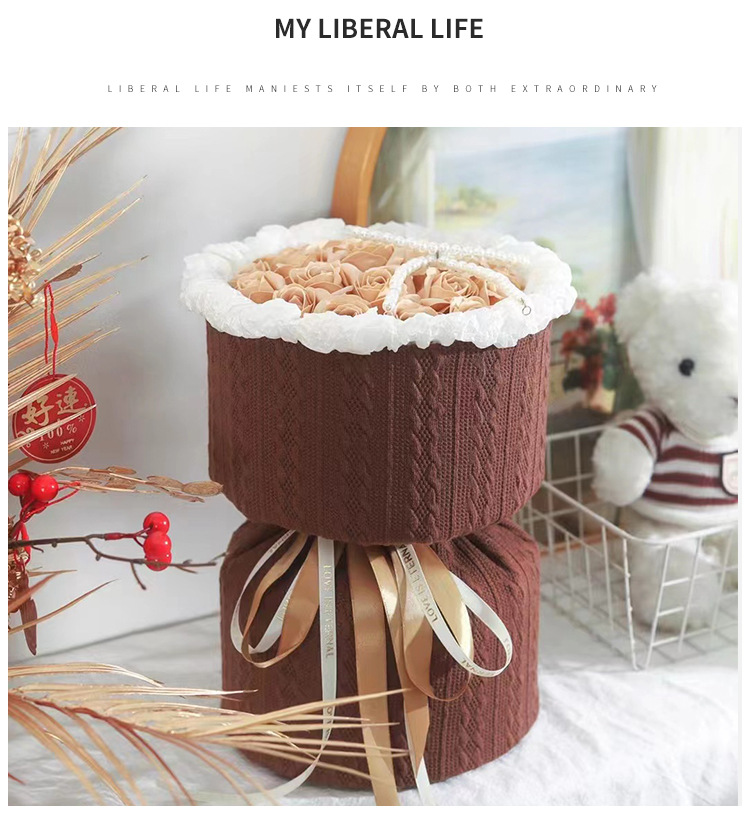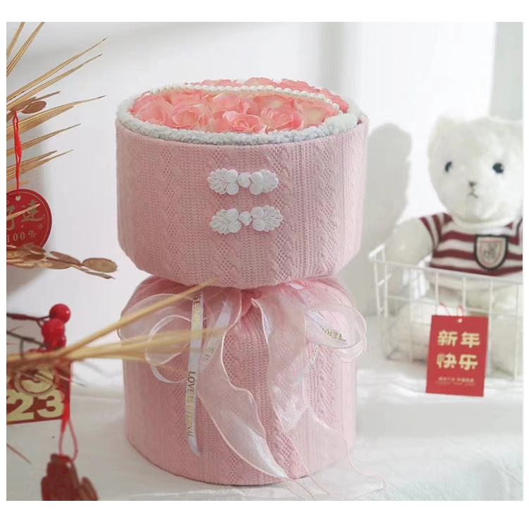 Navidad estilo Chanel tejido de punto flor papel de embalaje redondo ramo DIY material de embalaje hecho a mano flor papel de embalaje