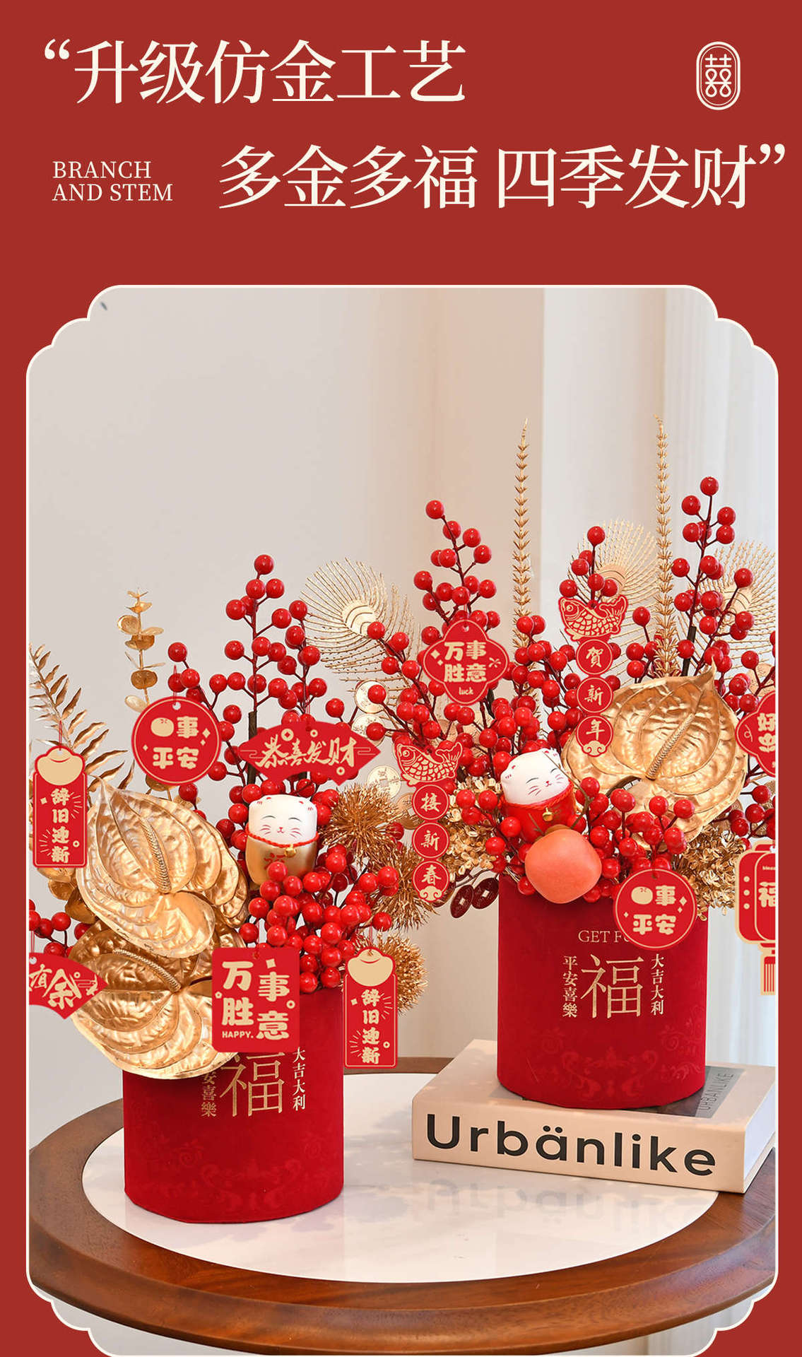 | Especificaciones y modelos | 1 conjunto de productos terminados [Dulian Dashun]; ver opciones, 1 conjunto de productos terminados [Yutang Fugu]; ver opciones, productos terminados [Ramas de Oro y Leaves de Jade]; ver opciones, 1 rojo; ver opciones, 1 dorado; ver opciones, 1 oro; ver opciones, productos terminados [Xinzhao Ruyi]; ver opciones |