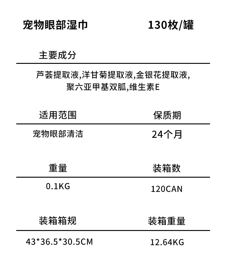 | Especificaciones | Toallitas húmedas especiales para ojos de mascotas (130 piezas) |