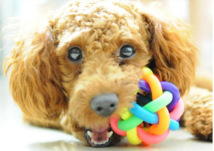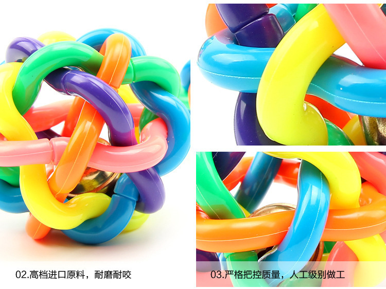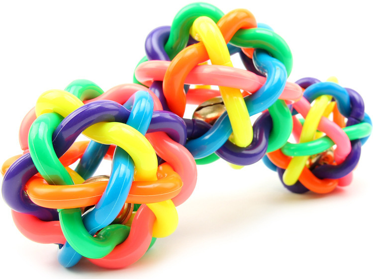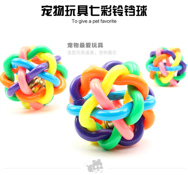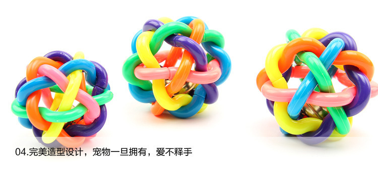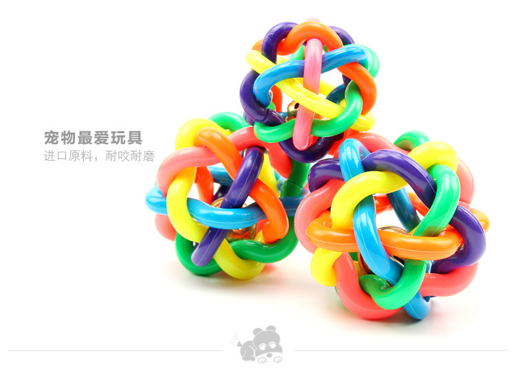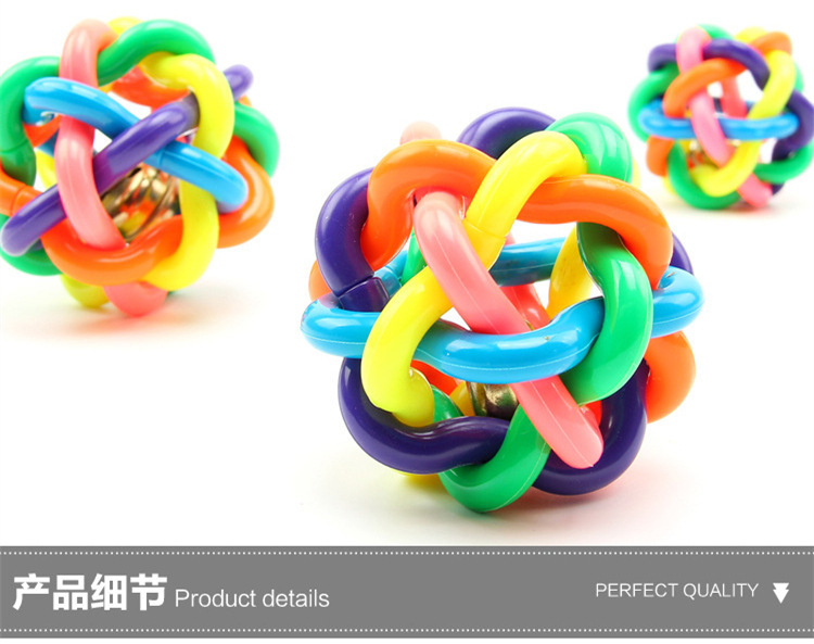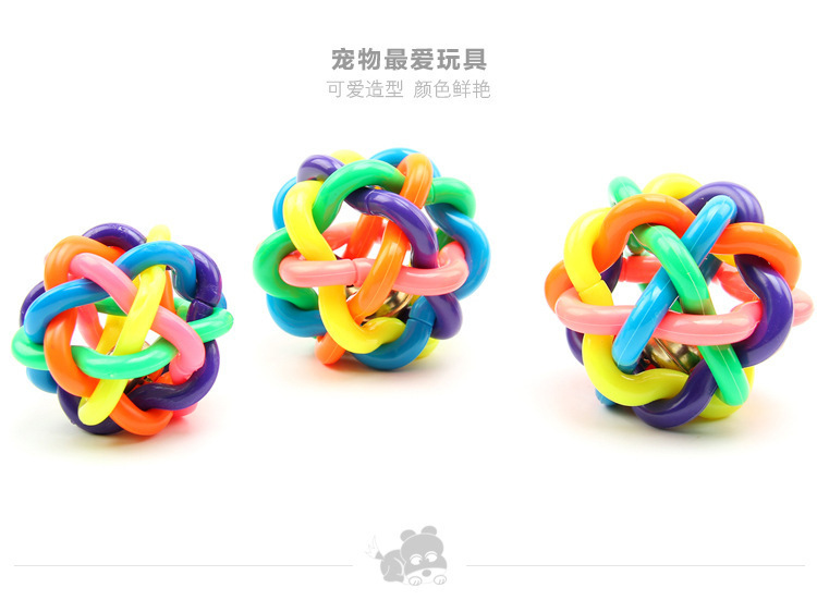 Una venta al por mayor mascota colorida campana bola tejida pelota de goma resistente a mordeduras de perro gato juguete Bola de juguete en stock
