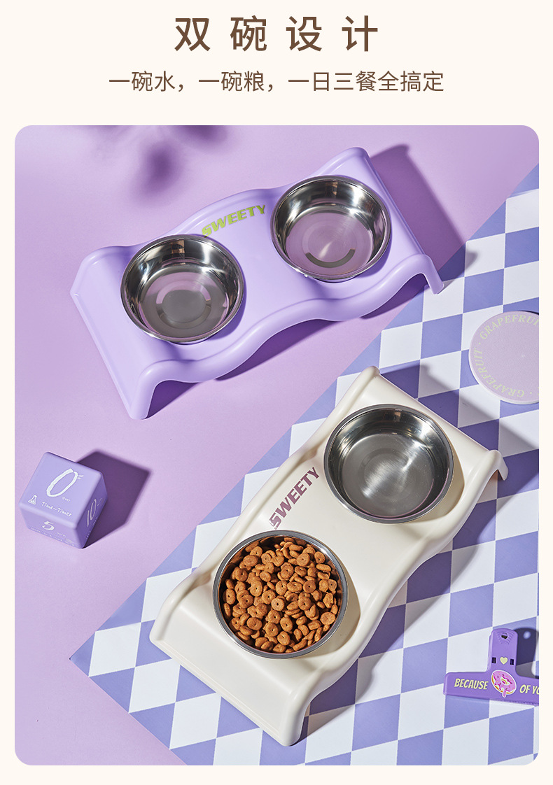 | Especificaciones | Tazón doble de crema ondulada [color crema], tazón doble de crema ondulada [color púrpura], tazón doble de crema ondulada [negro], [tazón doble de acero inoxidable de oso de dos orejas] blanco lechoso, [tazón doble de acero inoxidable de oso de dos orejas] morado, [tazón doble de acero inoxidable de oso de dos orejas] negro, tazón doble de lazo de queso [negro], tazón doble de lazo de queso [blanco], tazón doble de lazo de queso [morado] |