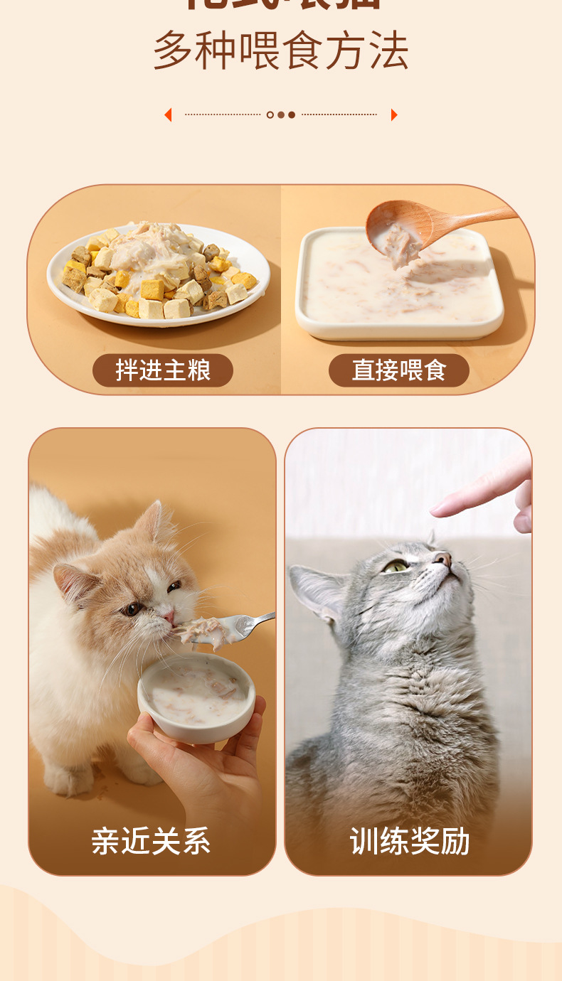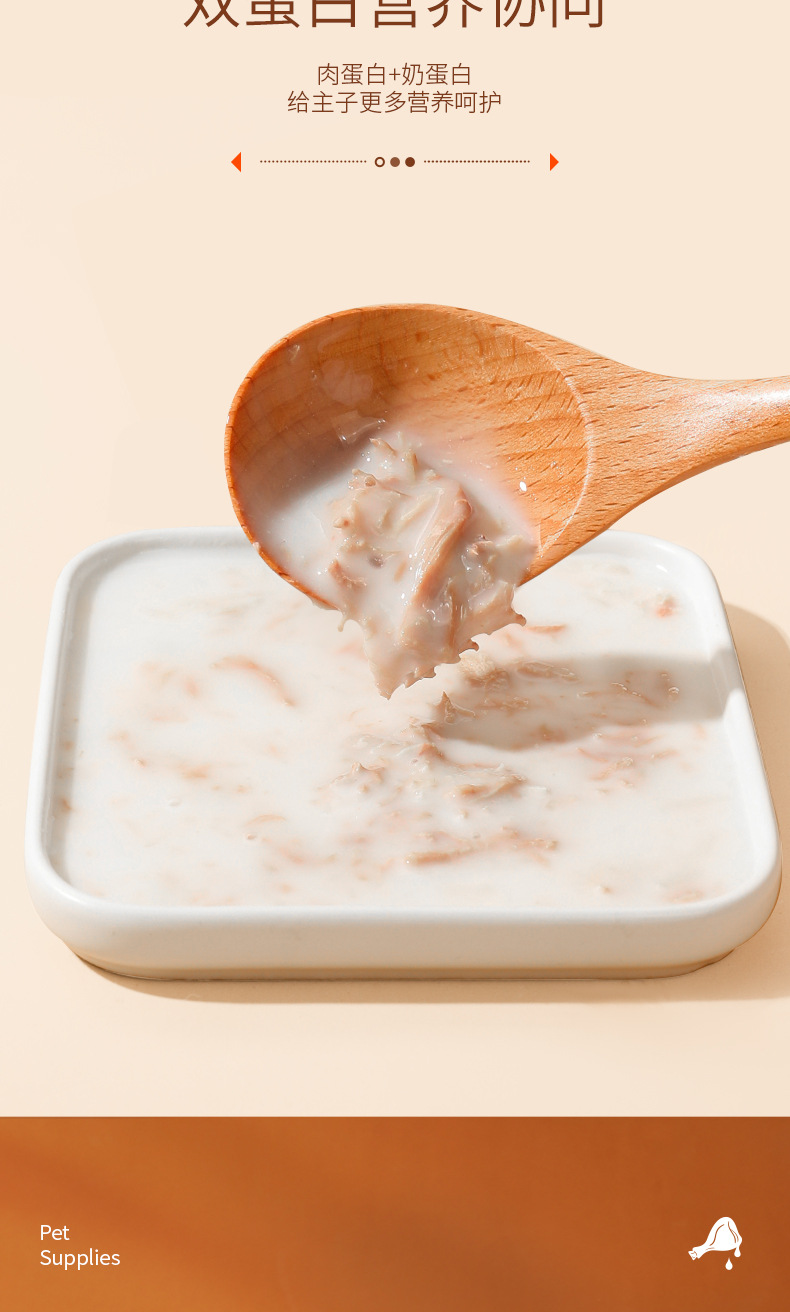 Pollo de atún guisado con leche de cabra,Pollo guisado con leche de cabra,Pato de agua guisado con leche de cabra,Carne de pollo (para perros),Bacalao de pollo (para gatos),Yema de huevo entera de pollo desmenuzado de pato,Yema de huevo entera desmenuzada de pollo con salmón,Carne de res, pollo desmenuzado, yema de huevo entera